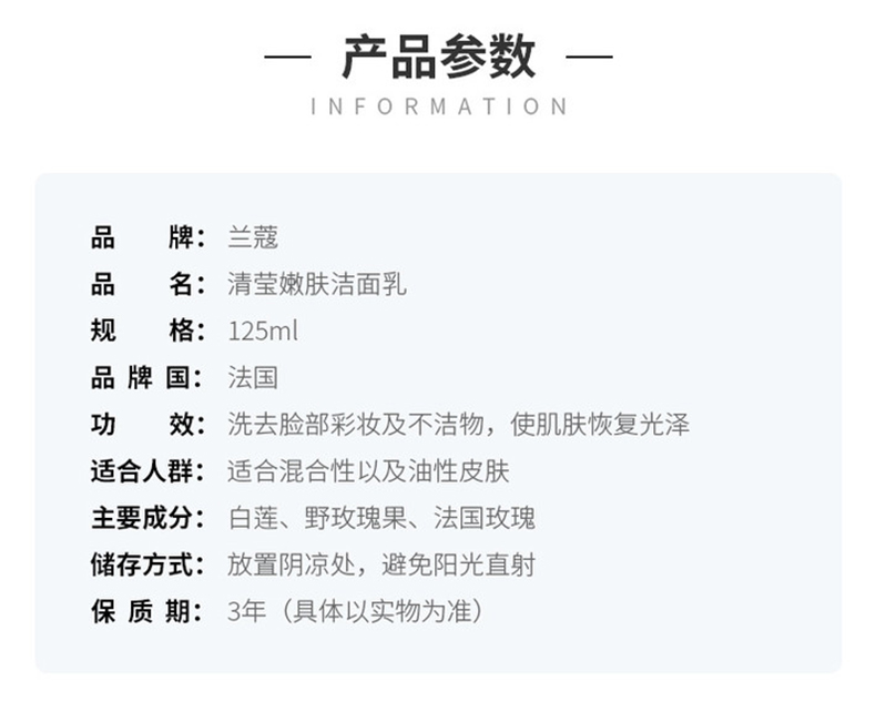 【中欧班列精选】YBF法国Lancome兰蔻粉泡沫洗面奶125ML