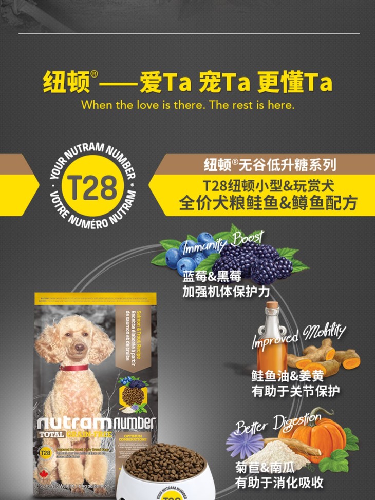 加拿大纽顿 T28无谷全价狗粮 鲑鱼&鳟鱼配方 1.82KG
