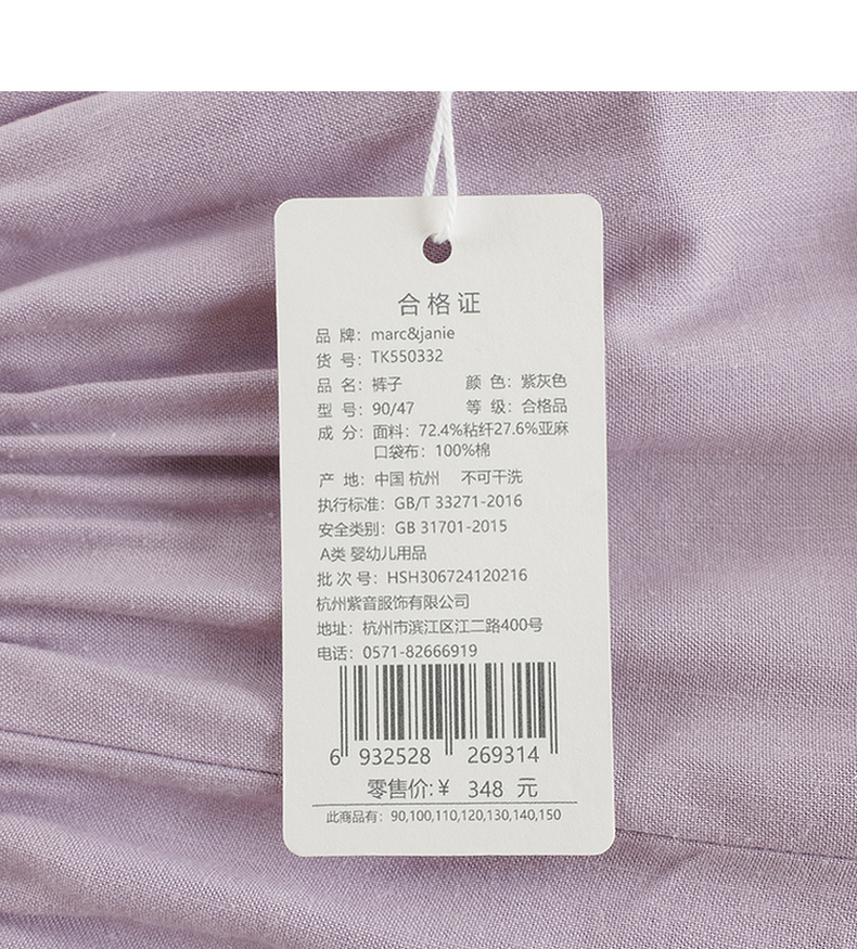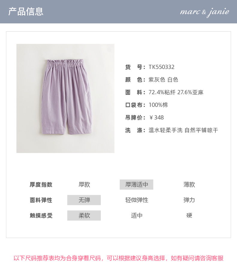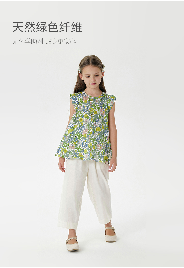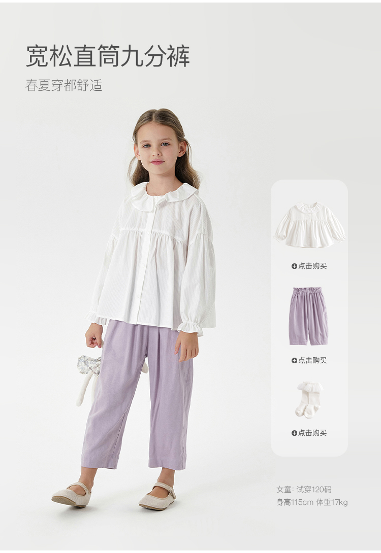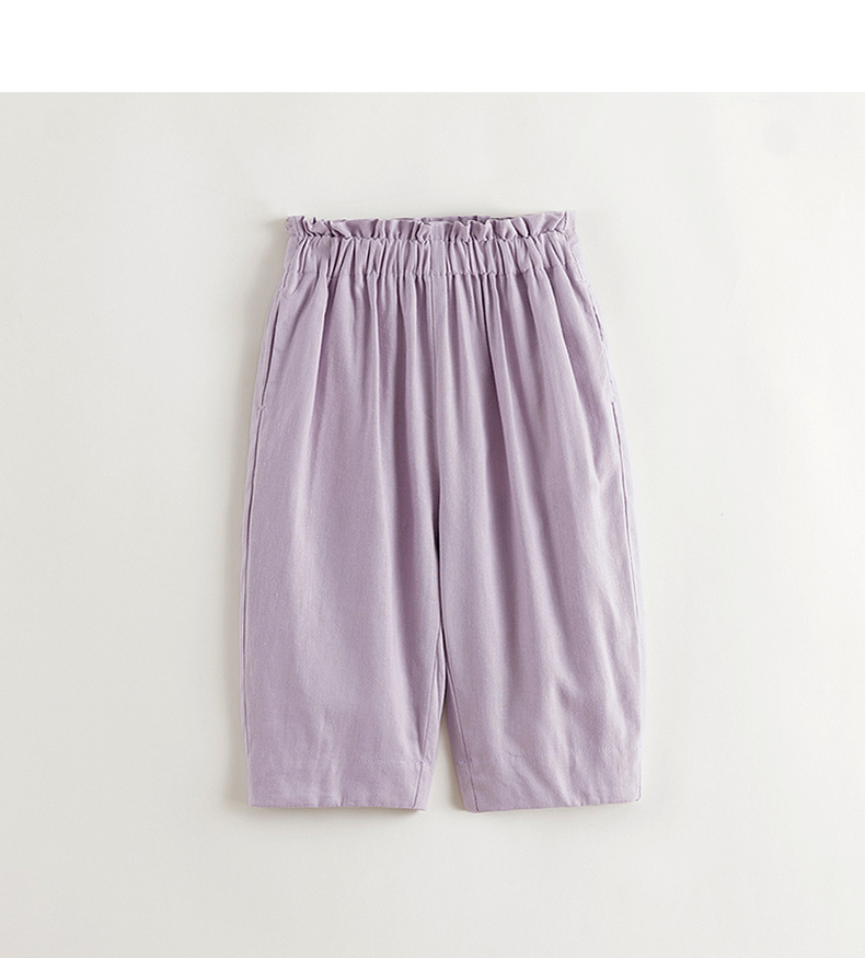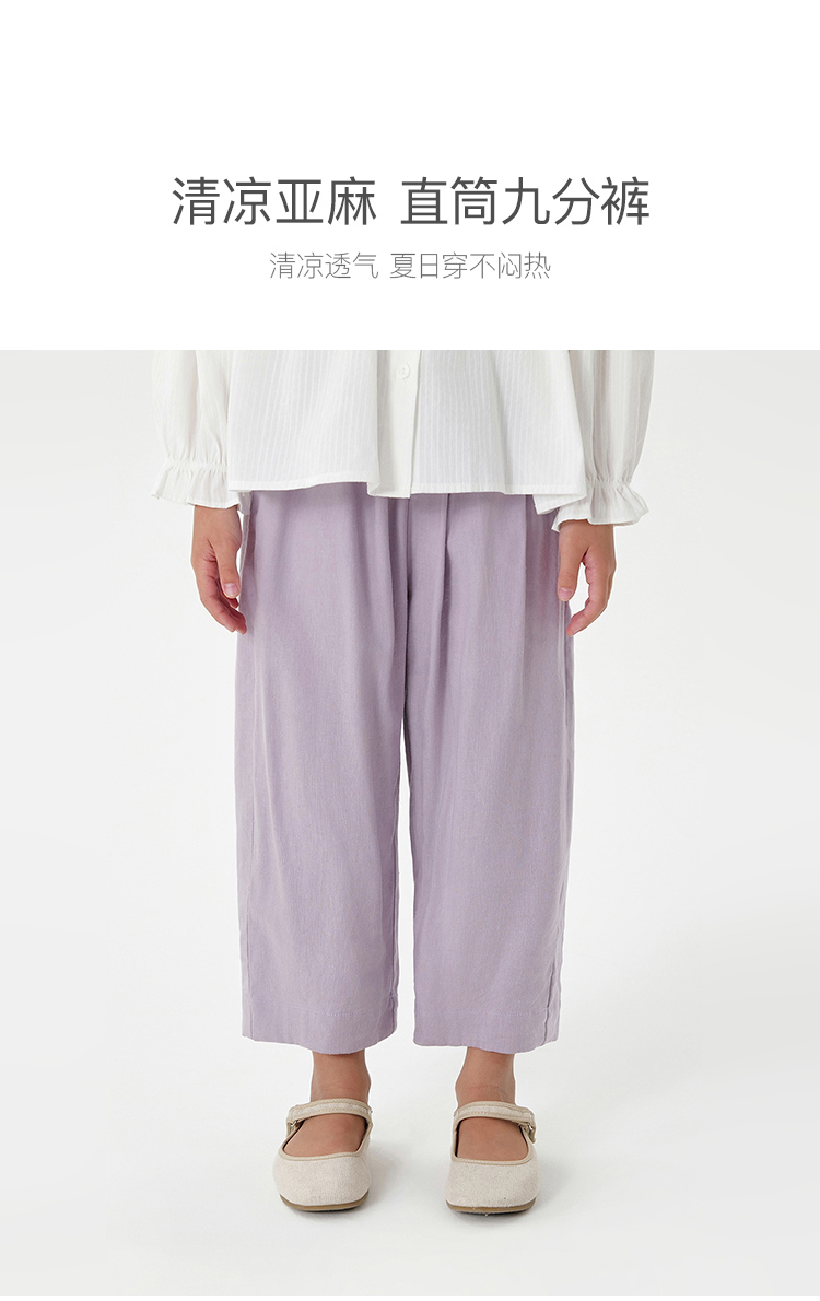 【天然亚麻】马克珍妮女童花边腰直筒九分裤 儿童裤子夏装550332