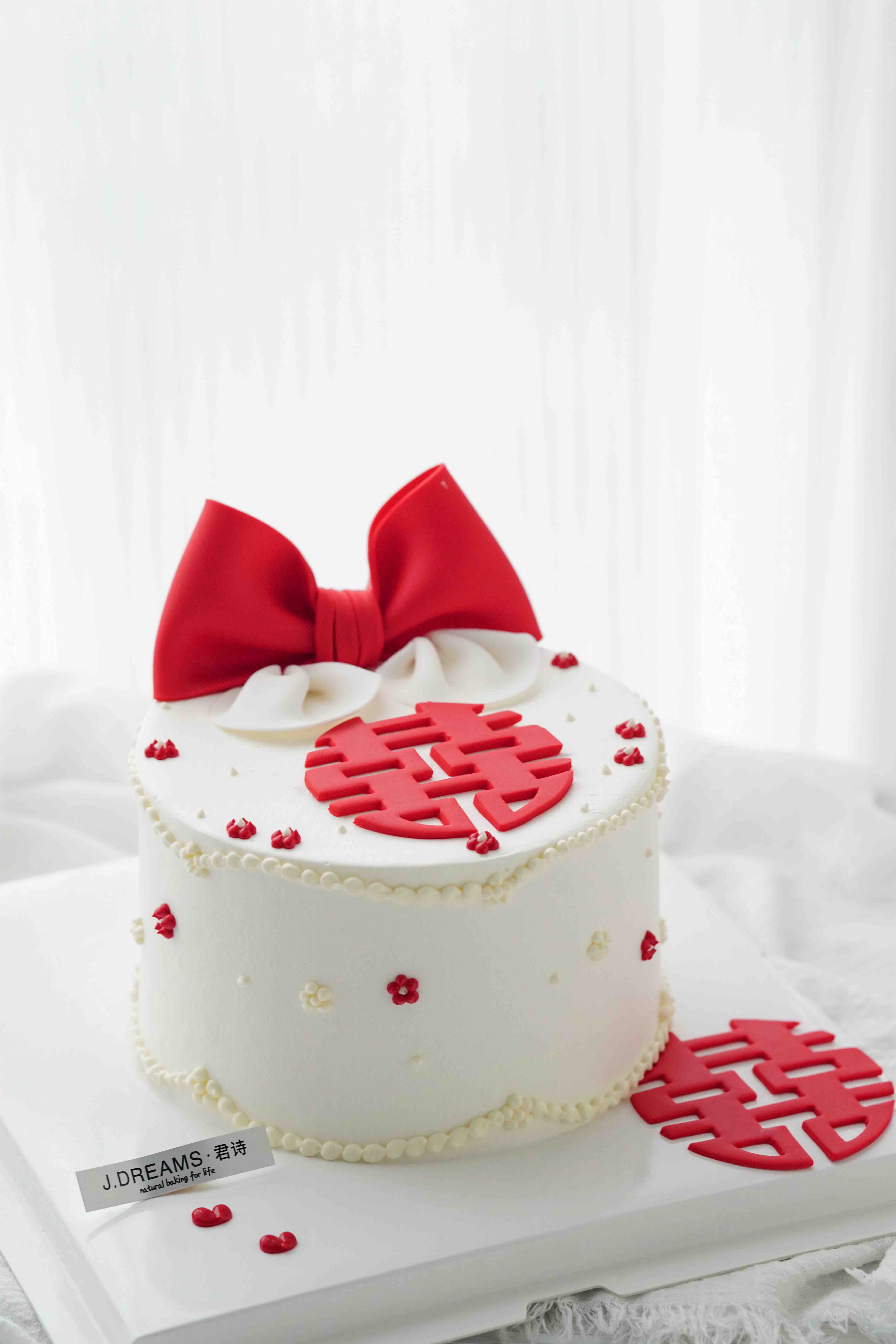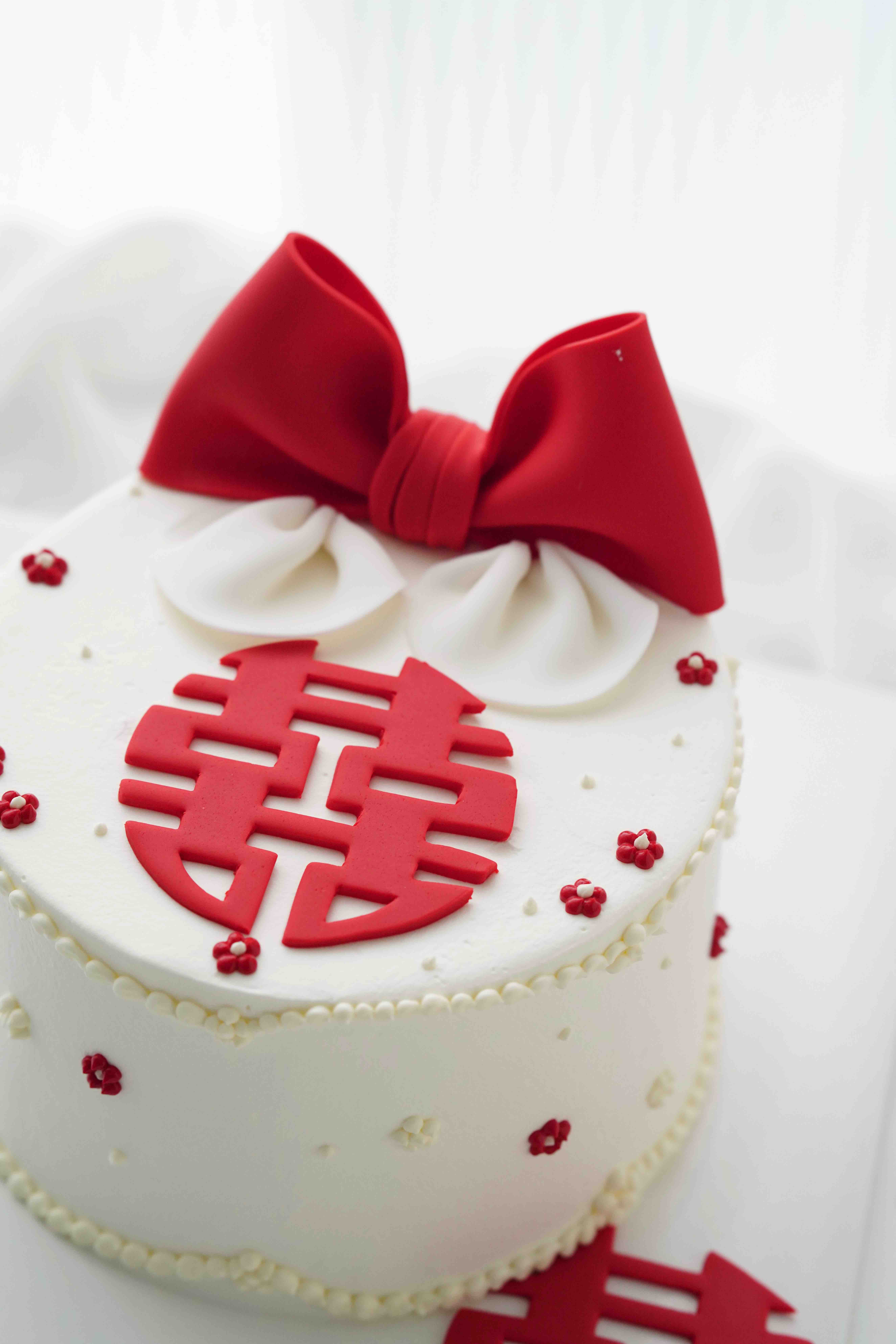 蝴蝶结和囍皆为翻糖制作