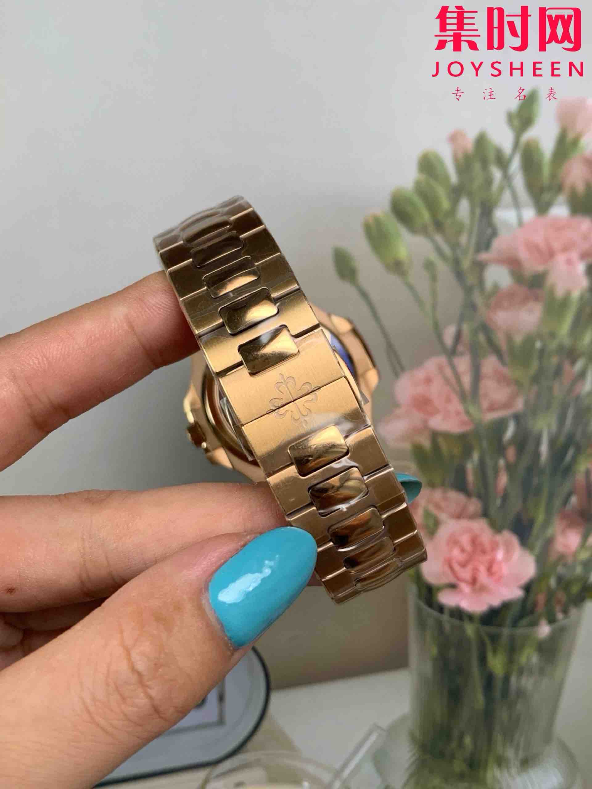 PPF潜心三年 真"芯"之作!百达翡丽PP鹦鹉螺系列5712GR 全玫金钢带 玫瑰金总裁 新升级V3版 男士腕表 巅峰出道了!表径40mm 这是真正具有里程碑意义的超级一体机芯Cal.240 PS IRM C LU。全机芯零件数265个,平面游丝,21600每小时振荡次数 Gyromax带调节砝码的摆轮,稳定无误差。(不同于市面上现有的假机芯盖甲板,假珍珠陀) 全新修正的不锈钢表带,铰链部分根据真正的百达翡丽鹦鹉螺不锈钢表带拆解开发,和正品一致的贴合效果,逆袭市面上所有副本,铰链开合角度和正品一致,锁毕声音和正品相同。du家的"蓝魅"面无限接近接近原版,更是傲视群雄!市面zui高版本!