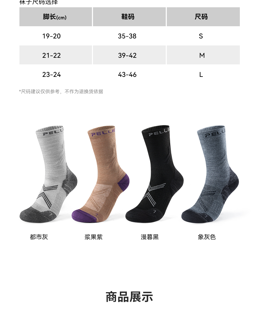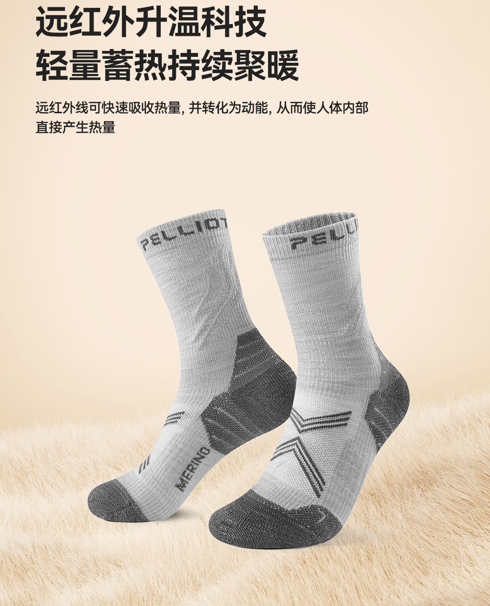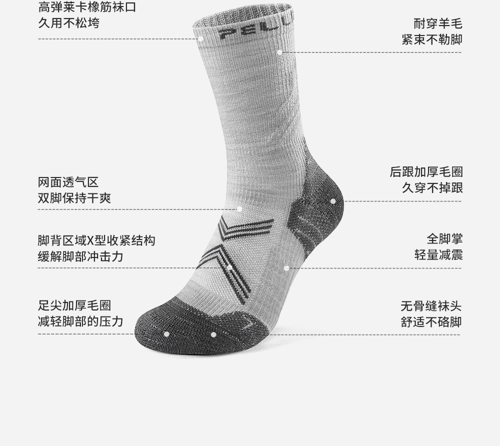 伯希和户外袜美利奴羊毛徒步袜男中筒秋冬登山专业运动跑步袜子女