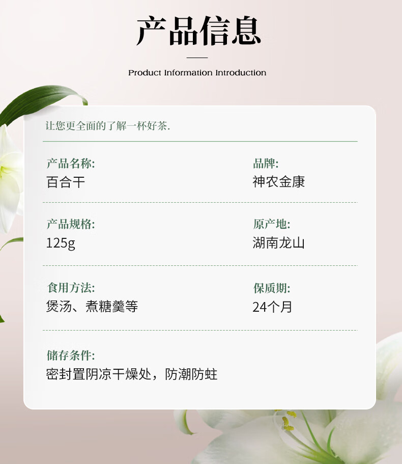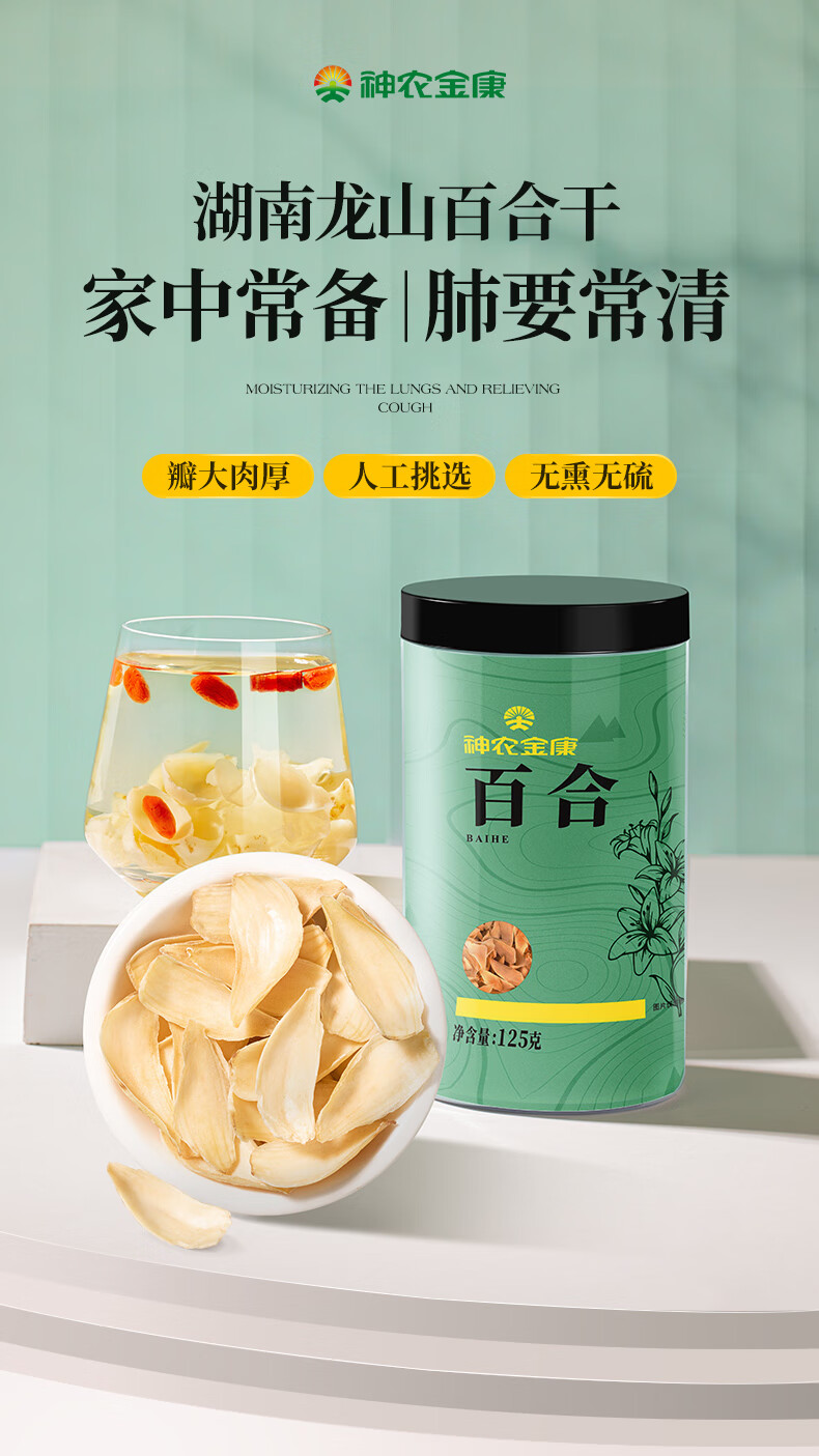 神农金康 百合干125g 原生态真滋补 喝护家人健康