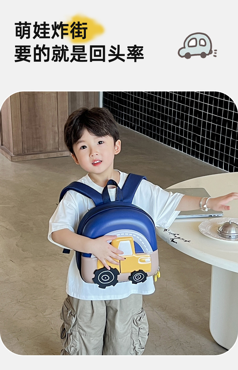 【容量出乎想象,外出收纳小能手】新款儿童幼儿园书包 可爱动漫小汽车硬壳背包 午餐包迷你宝宝背包-QQ