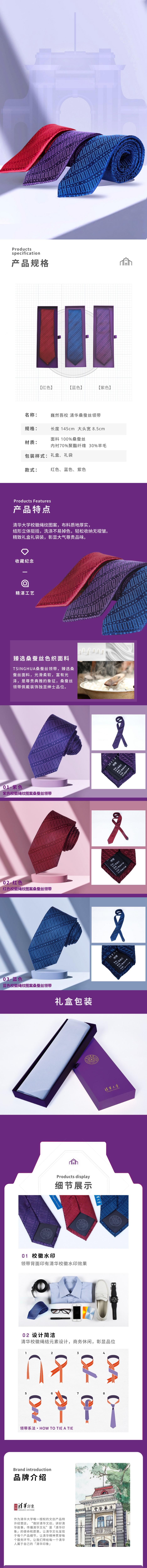 巍然吾校 清华桑蚕丝领带