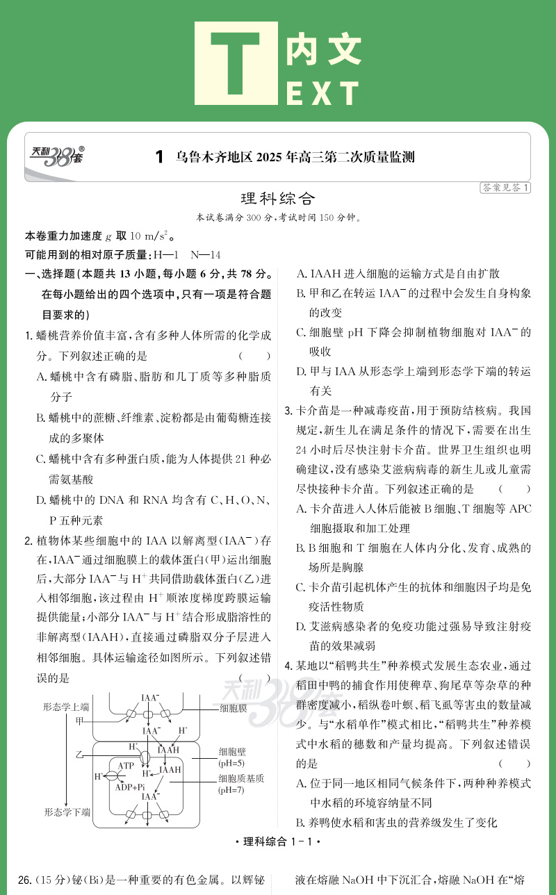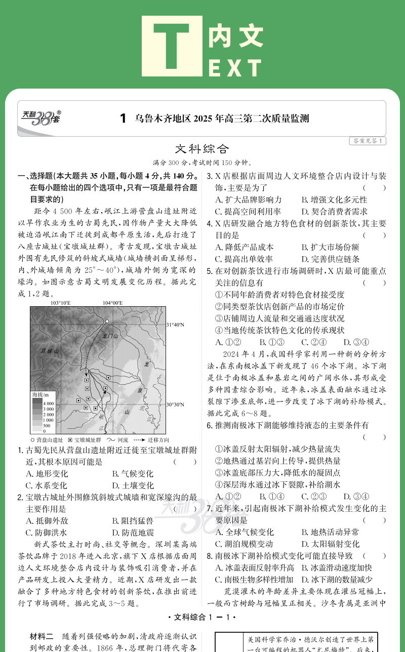 天利38套 2026新疆高考模拟试题汇编 文科综合 理科综合