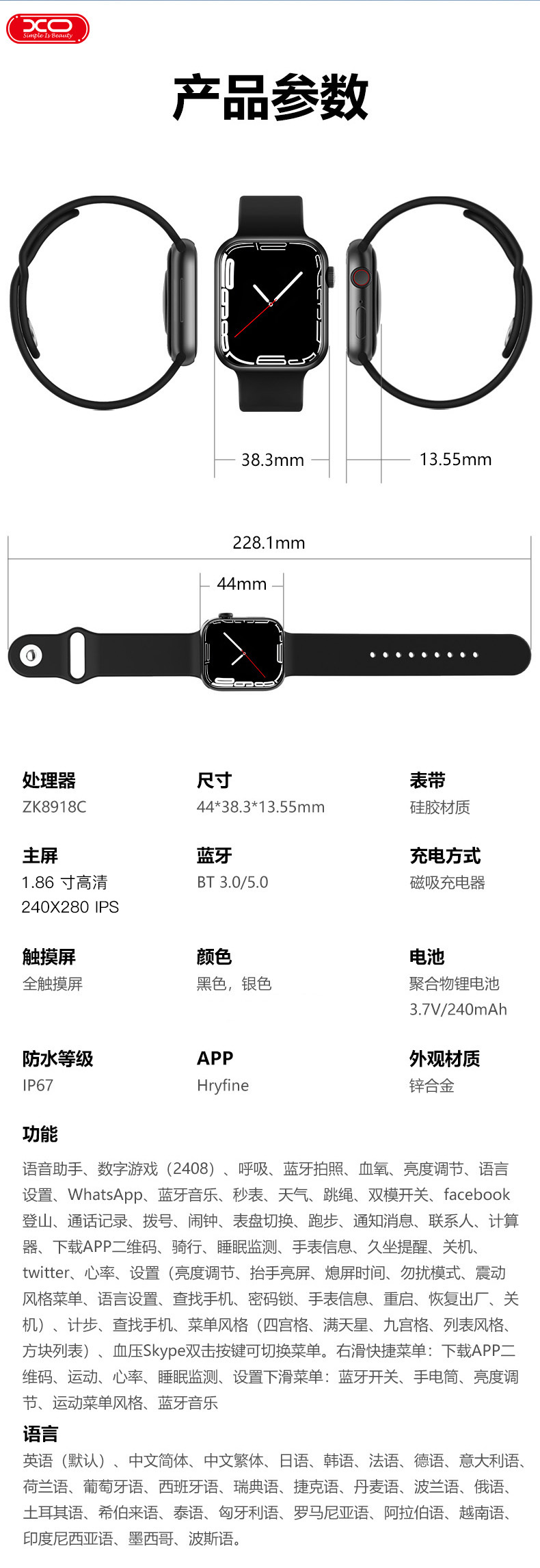 星云磁吸式智能运动通话手表XO-M20