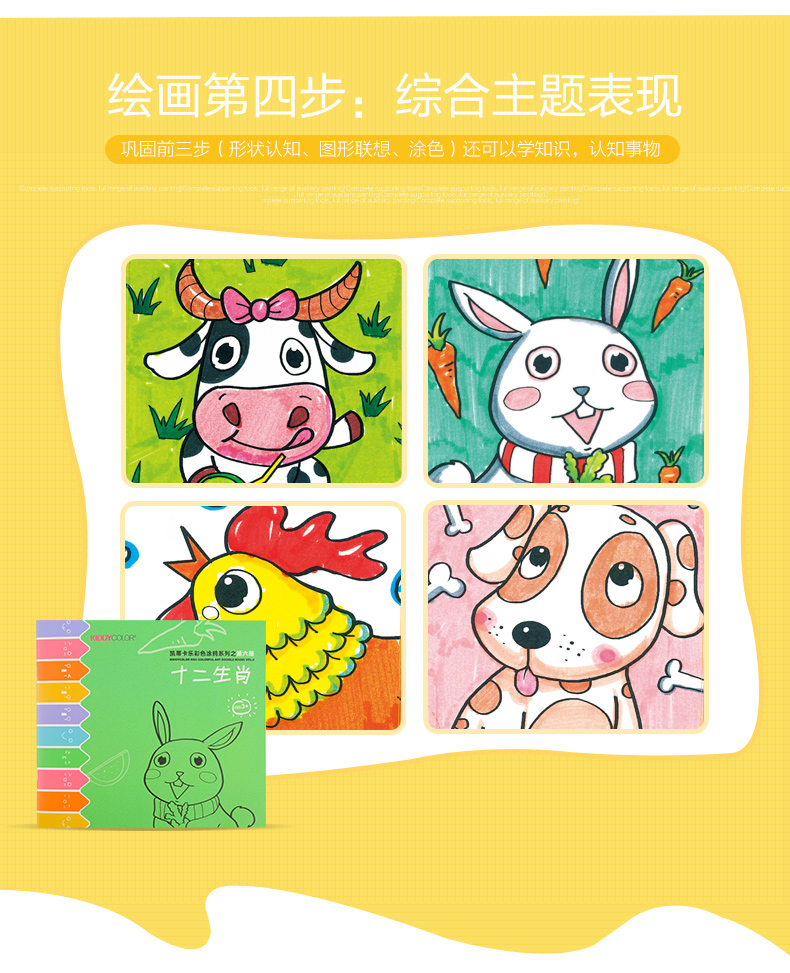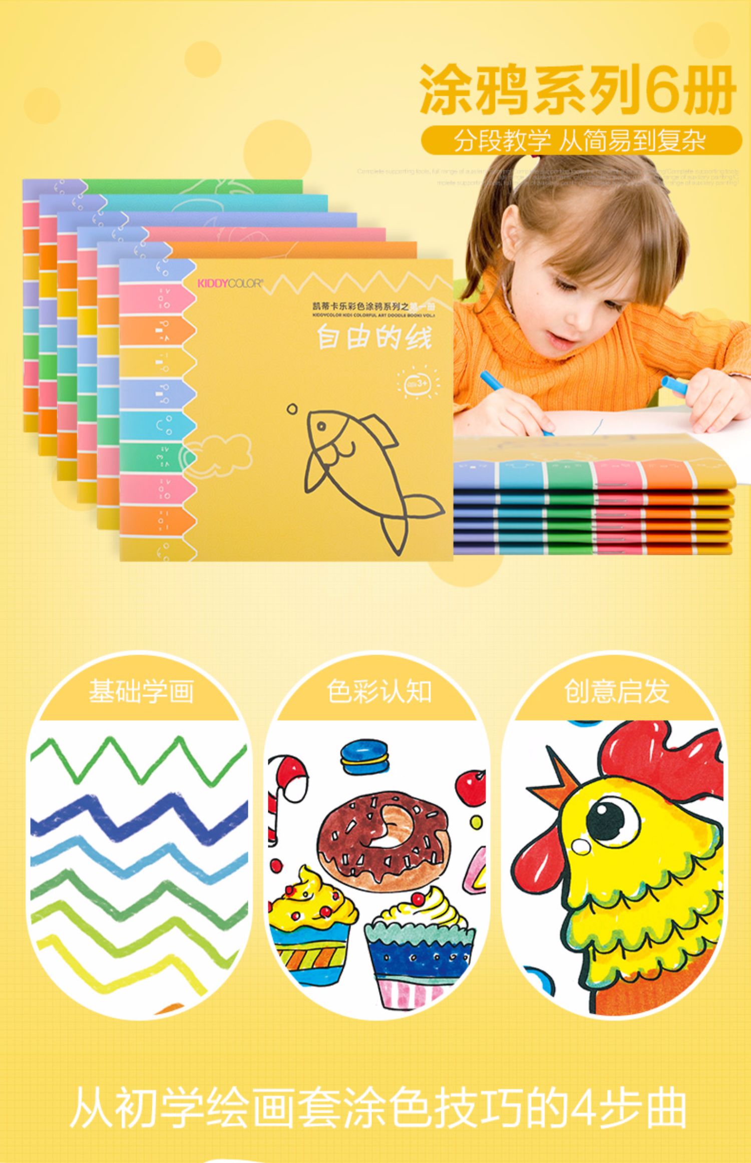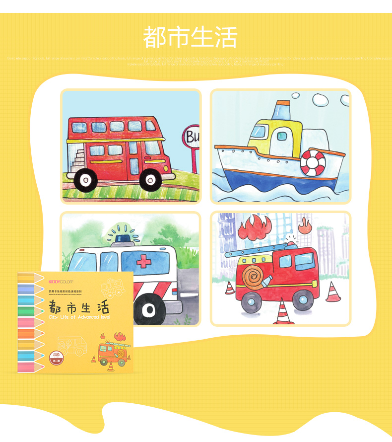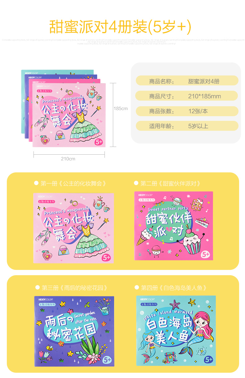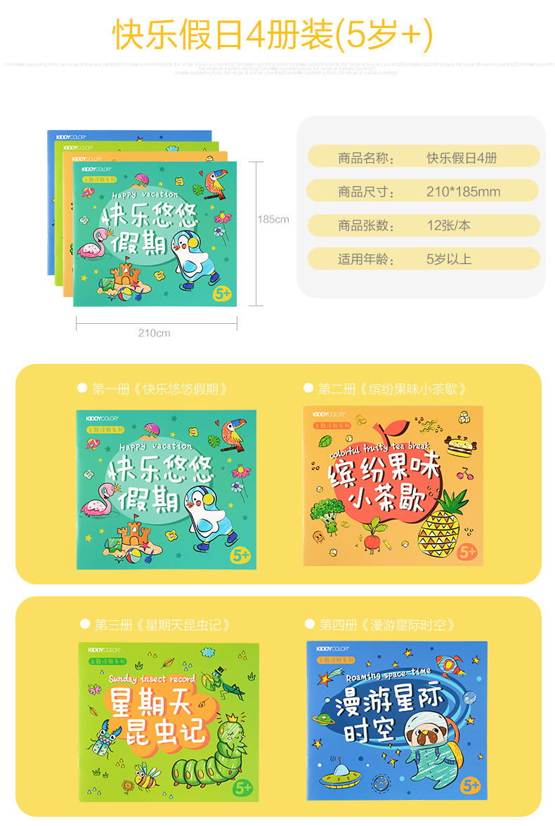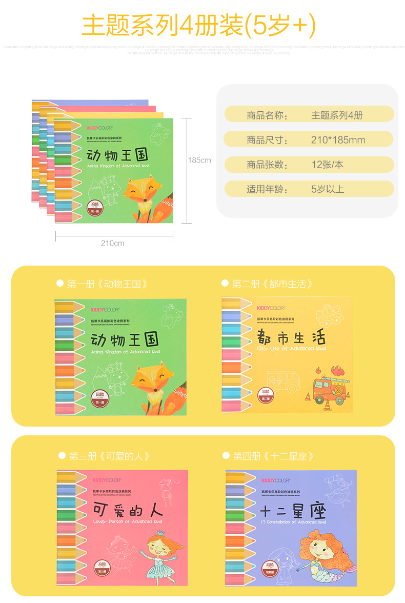【29元4本主题画画本】kiddycolor凯蒂卡乐绘画本填色涂鸦画册套装 加厚纸张 适合多种绘画笔材 开发儿童色彩想象力