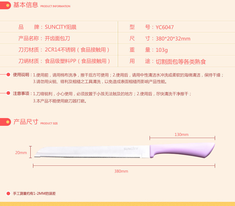 阳晨开齿面包刀 家用锯齿刀蛋糕吐司切片刀具 不锈钢土司刀