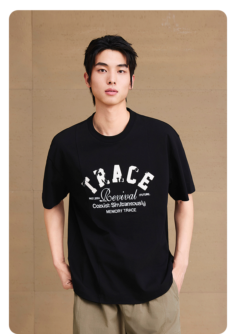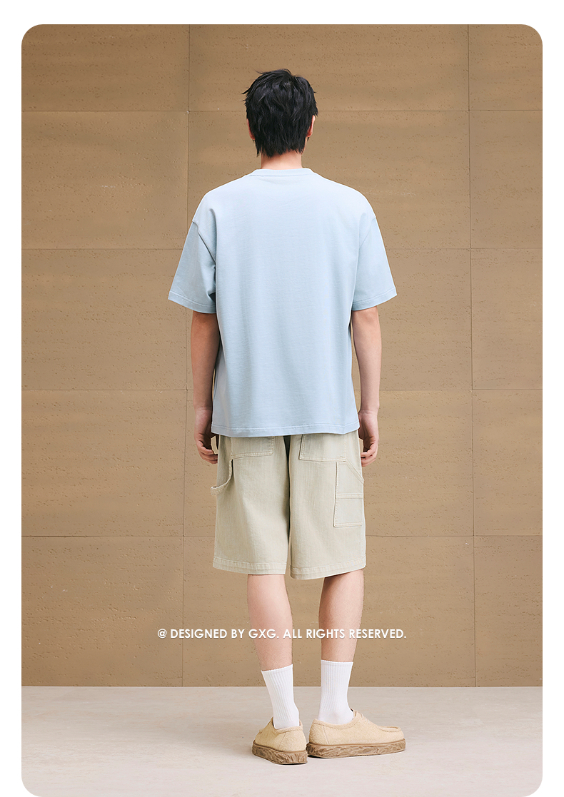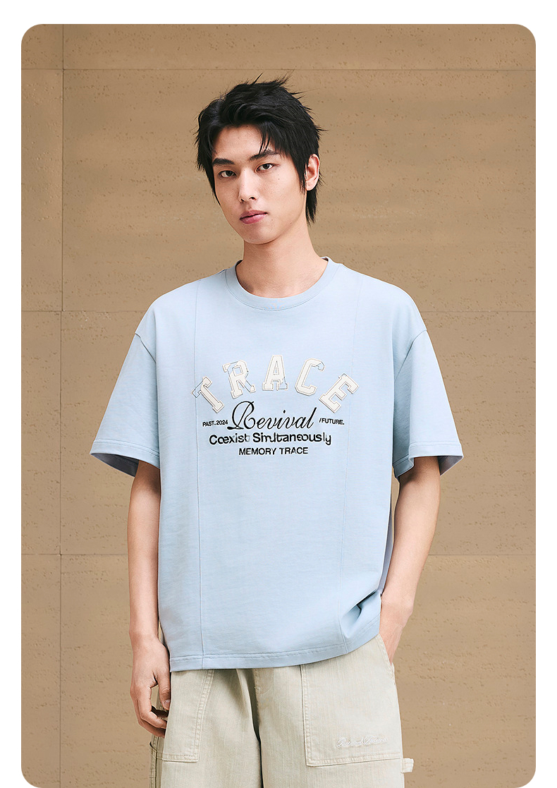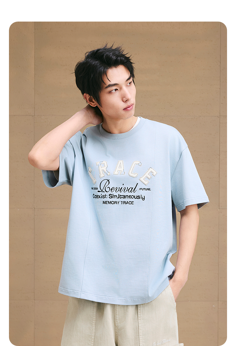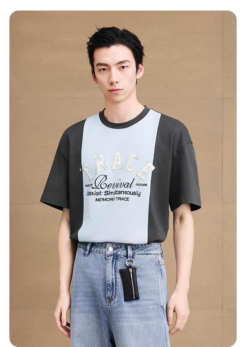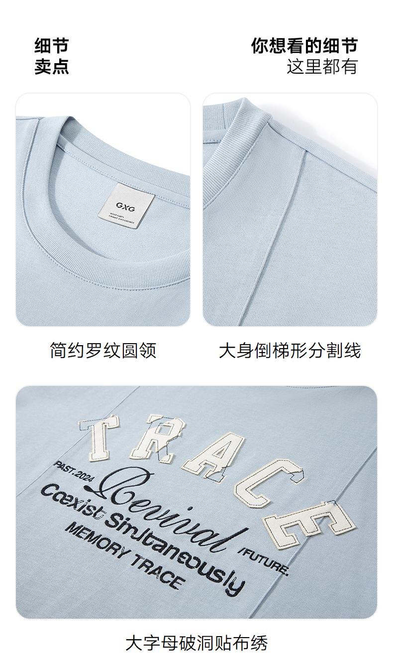 GXG男装 圆领T恤字母贴布绣上衣凉感短袖针织 2025夏季新品