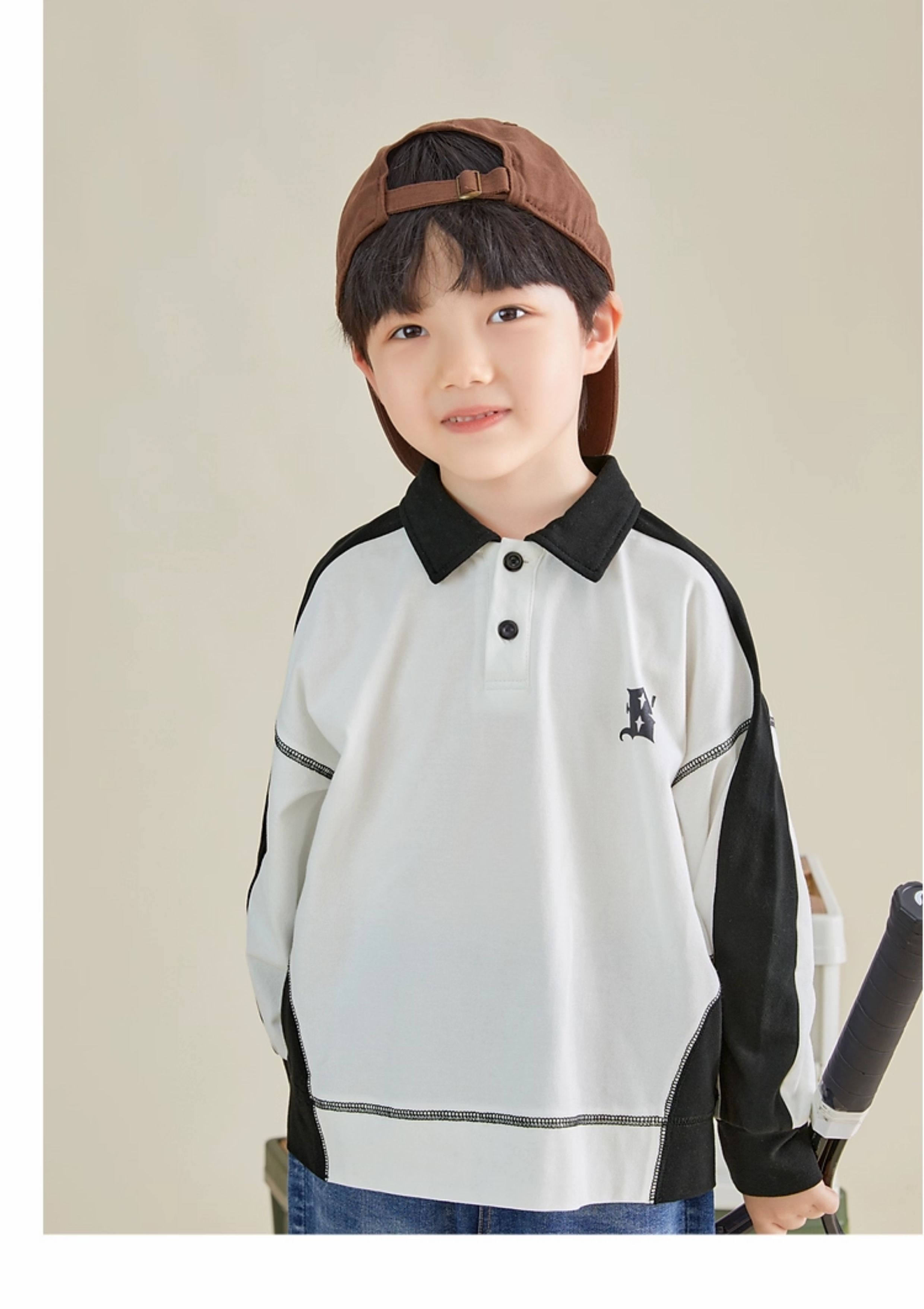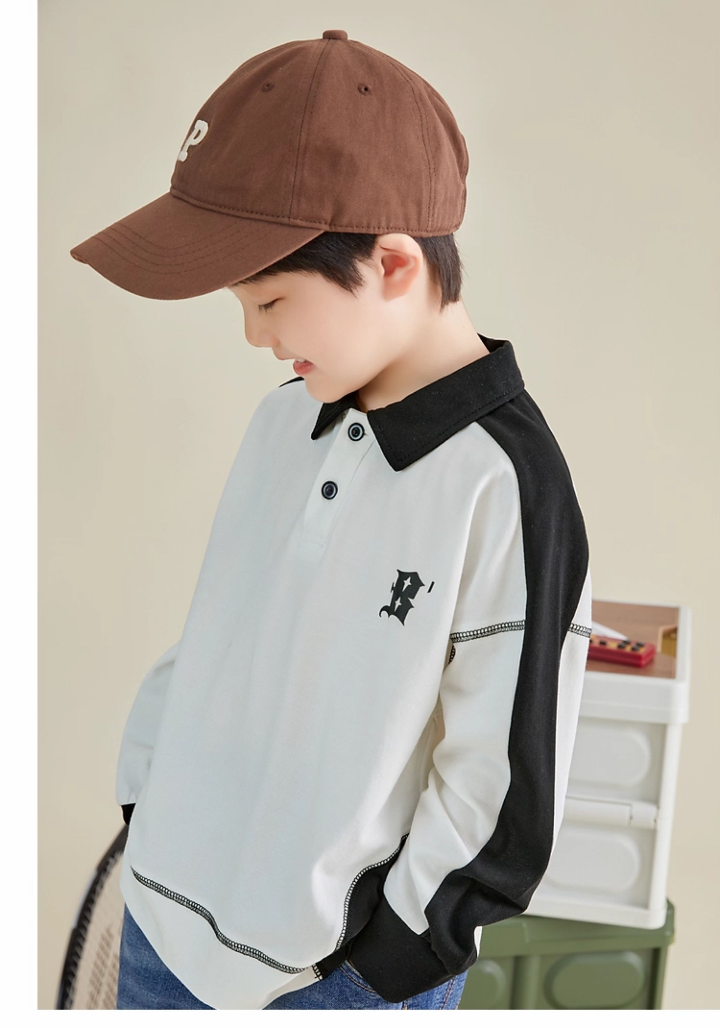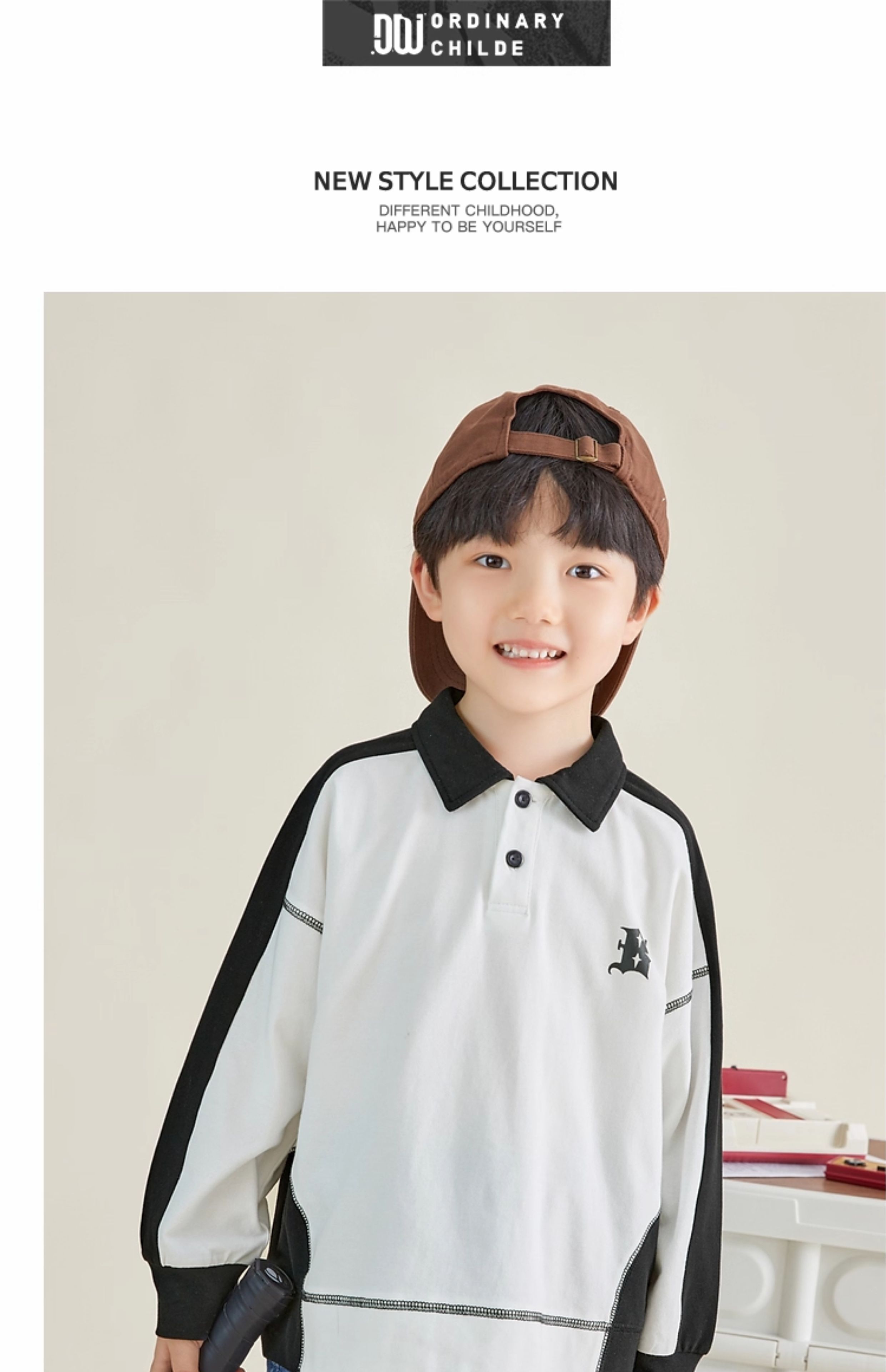 【件件底价,童装双倍积分】多多家男童polo衫撞色秋装儿童卫衣2025新款翻领中大童春秋季上衣5909