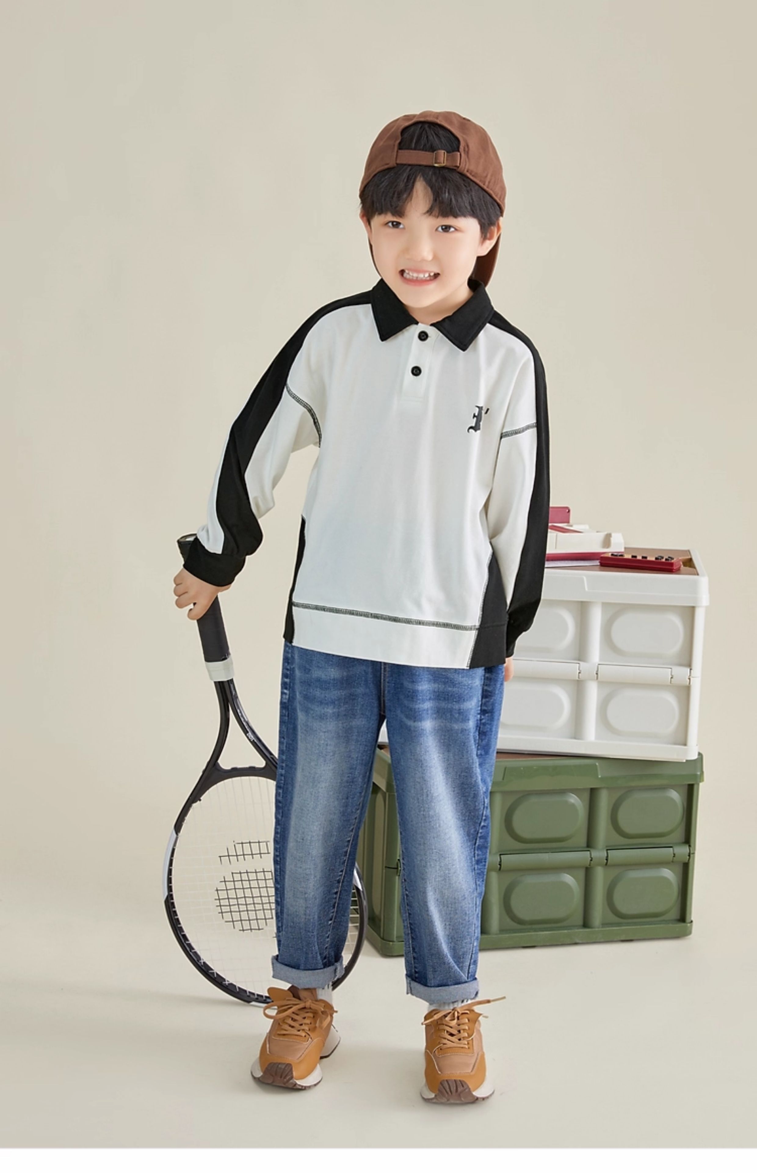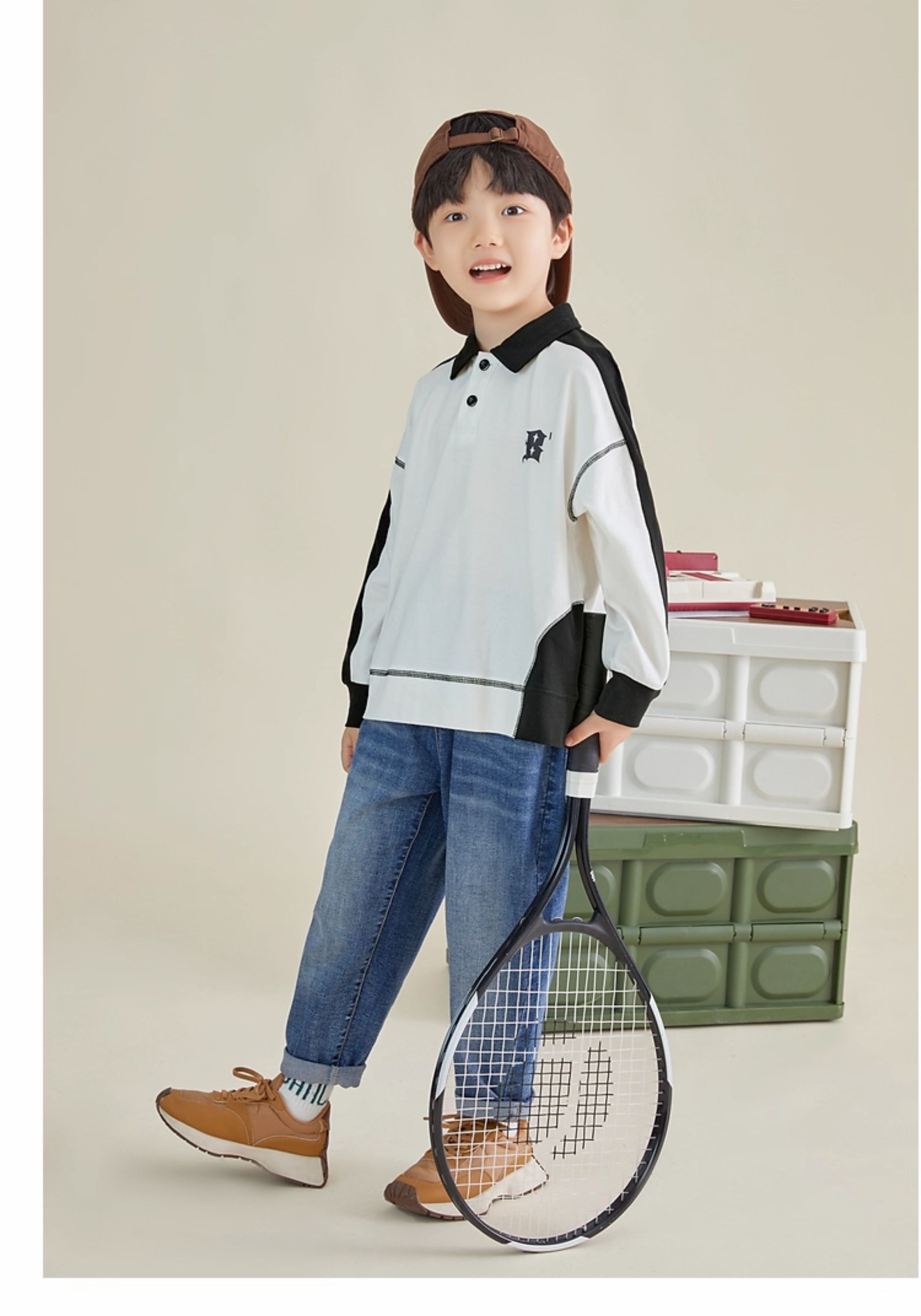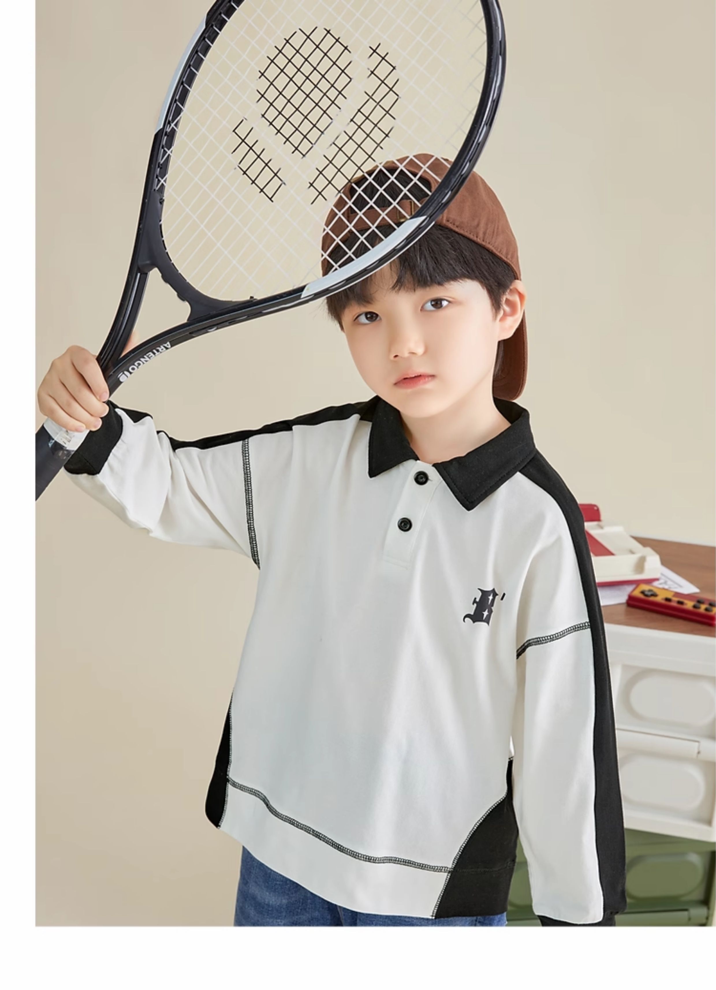 【件件底价,童装双倍积分】多多家男童polo衫撞色秋装儿童卫衣2025新款翻领中大童春秋季上衣5909