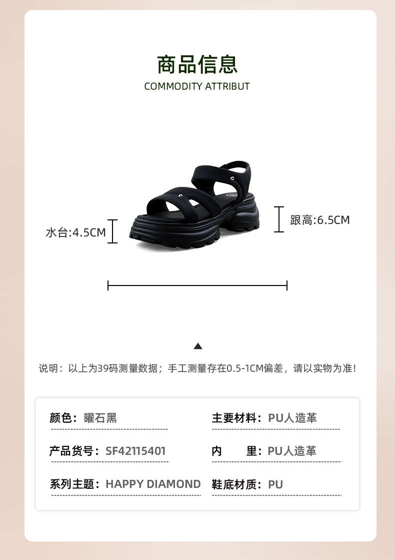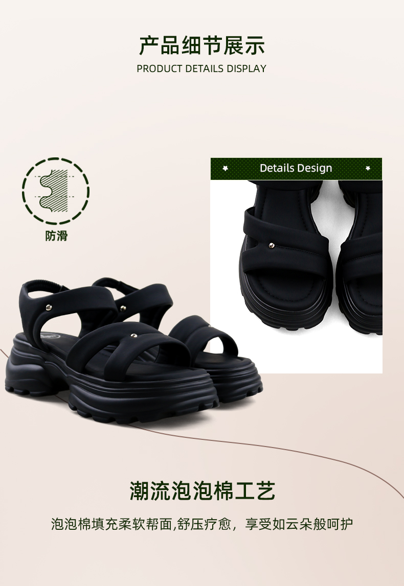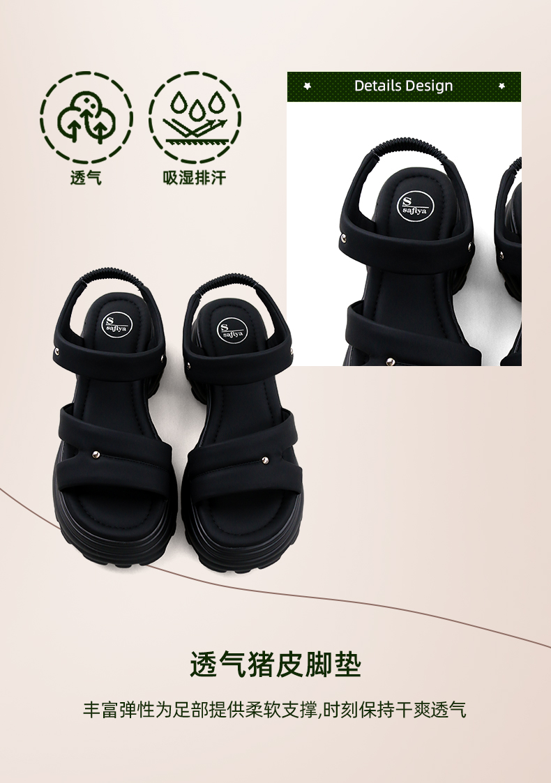Safiya/索菲娅2024夏潮流松糕厚底小个子轻便休闲百搭运动凉鞋 SF42115401