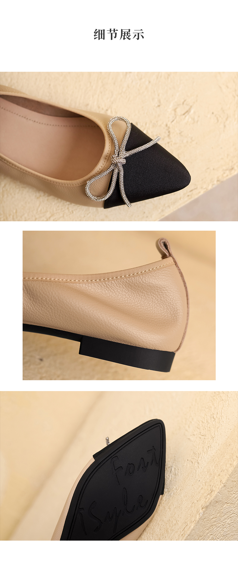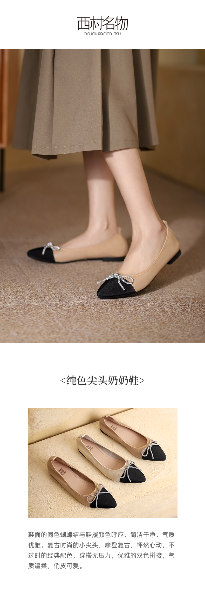 西村名物2022春季新款水钻撞色蝴蝶结甜美平底豆豆鞋女单鞋17681