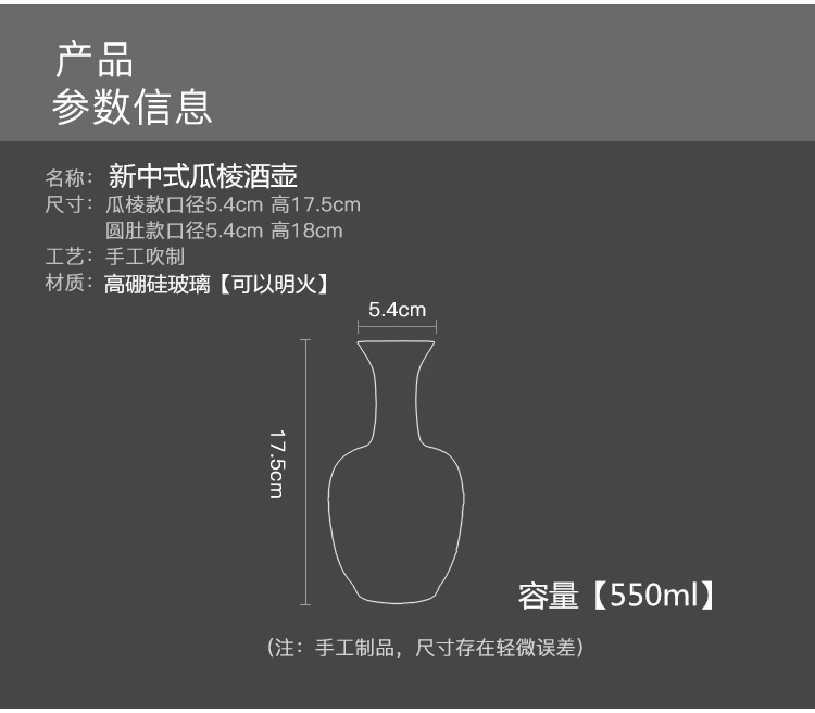 菱形瓶/玻璃花器 手工玻璃摆件 酒壶高硼硅新中式酒具白酒杯清酒酒壶套装分酒器