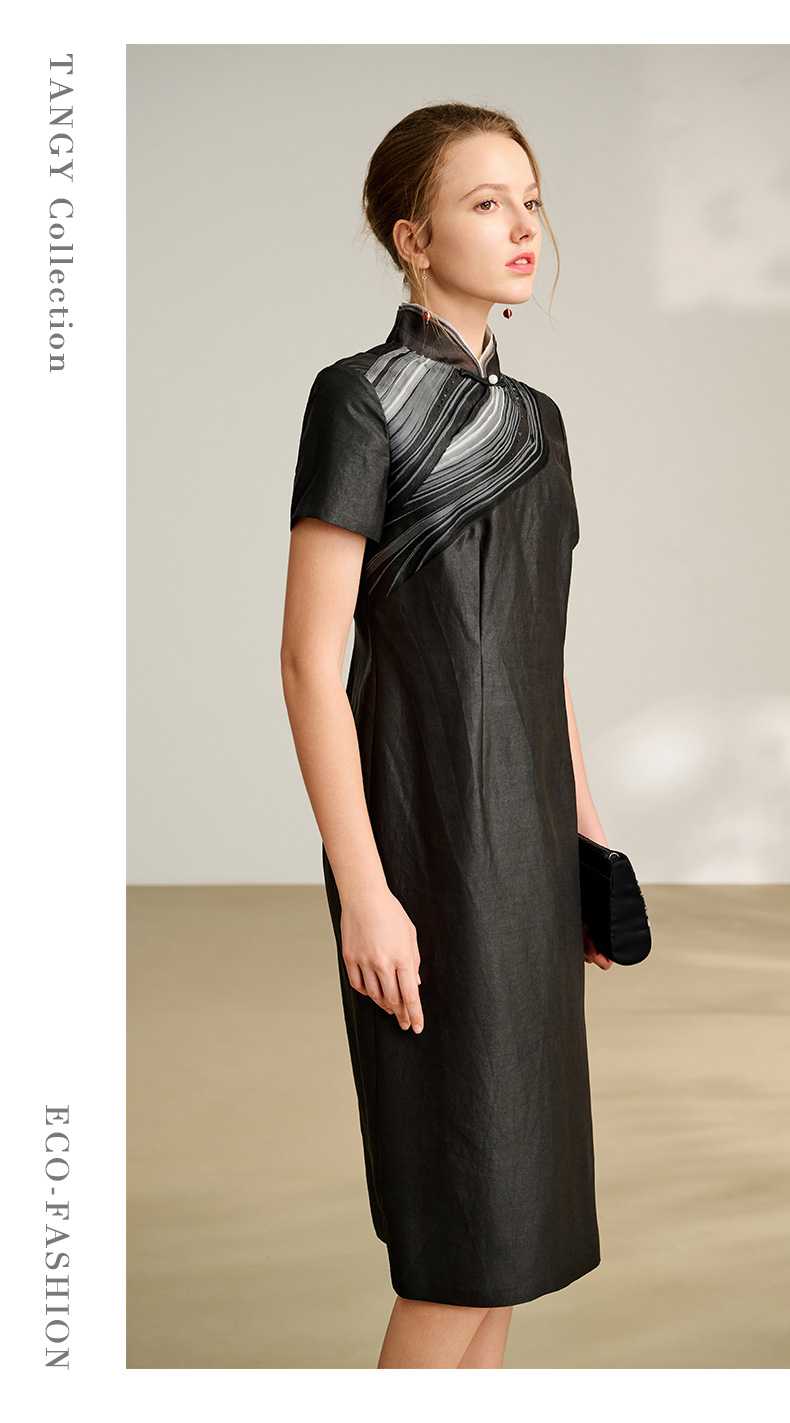 TANGY Collection天意商场款民族风复古立领连衣裙L252813