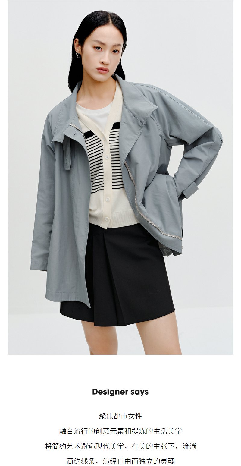 NEELLY纳俪商场同款风衣外套女中长款秋季新款设计感插肩袖上衣女N23081F01087