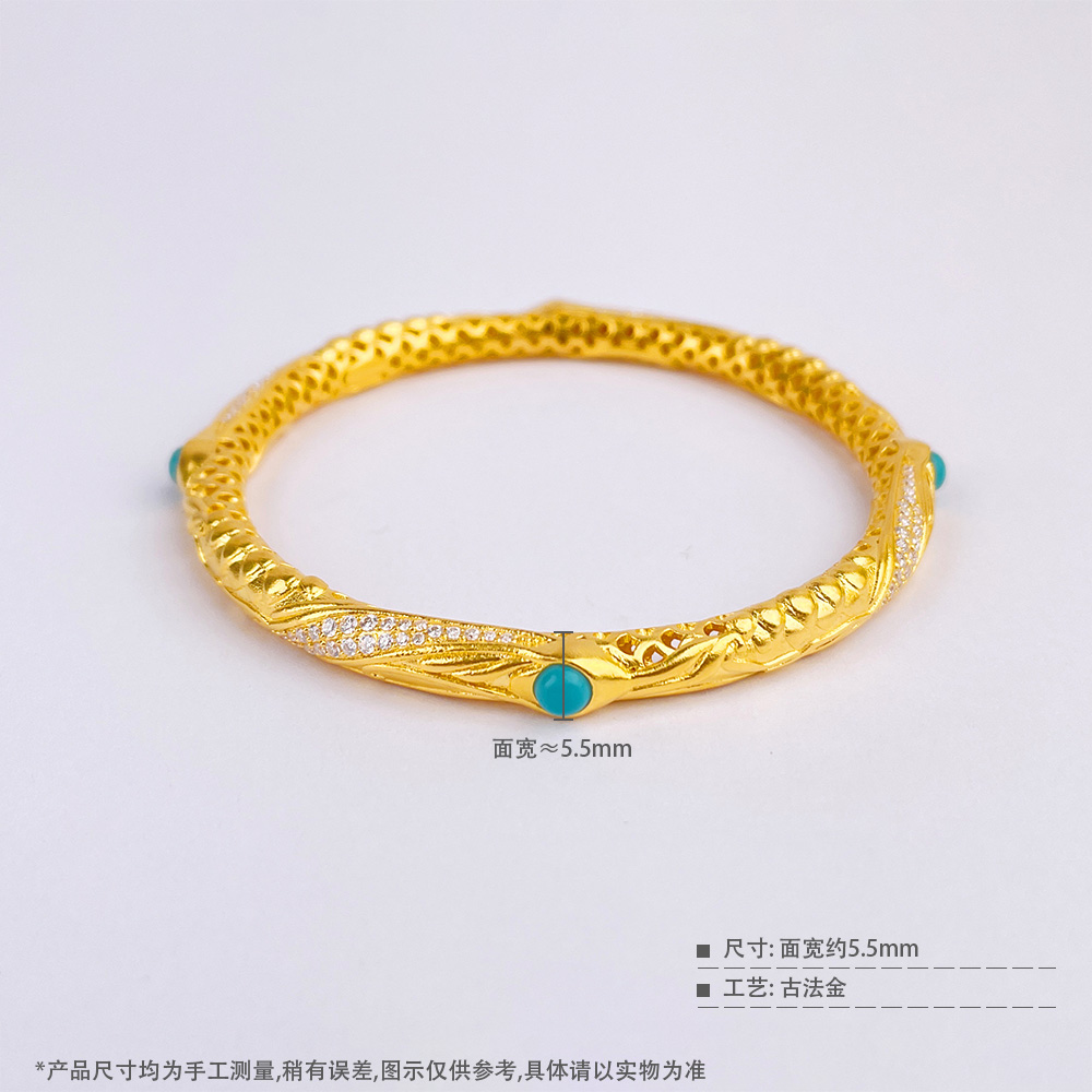 【限时克减150元】足金999 #莫桑石 古法空心莫桑石固口手镯哪吒乾坤圈手镯(面宽约5.3-5.7mm)(AYGFSZ00108)(预售产品下单后不退款不退货不换货不补差价)