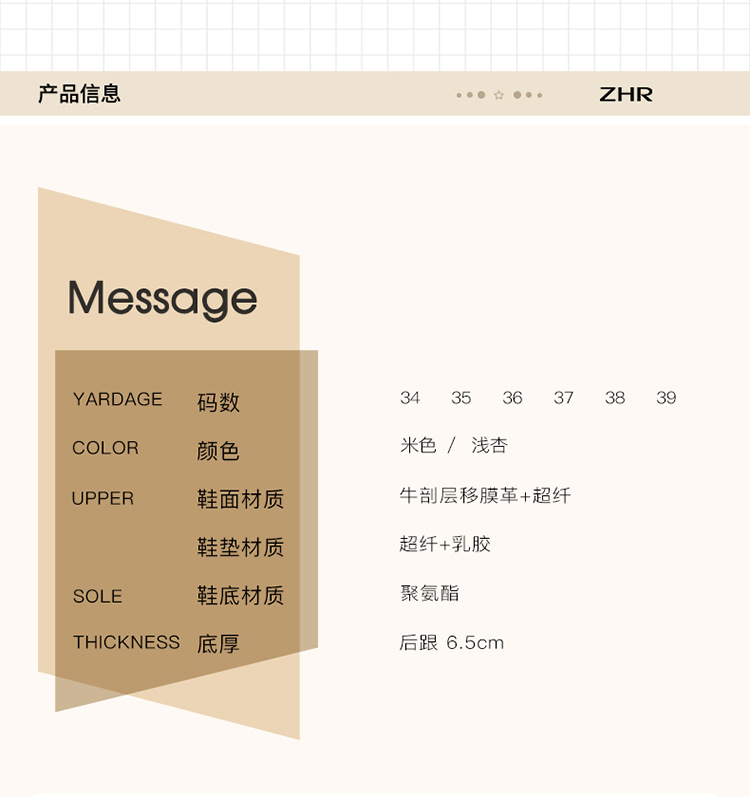 - ZHR一个有态度的女鞋品牌,以具有高性价比、舒适度、美观度的产品和优质服务赢得粉丝青睐