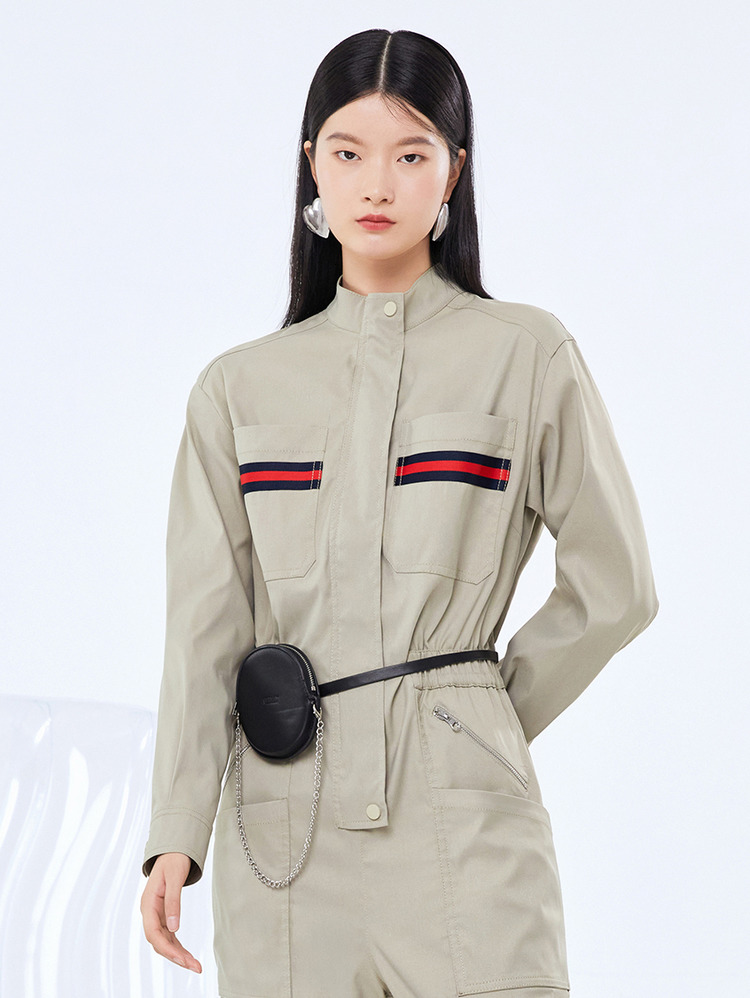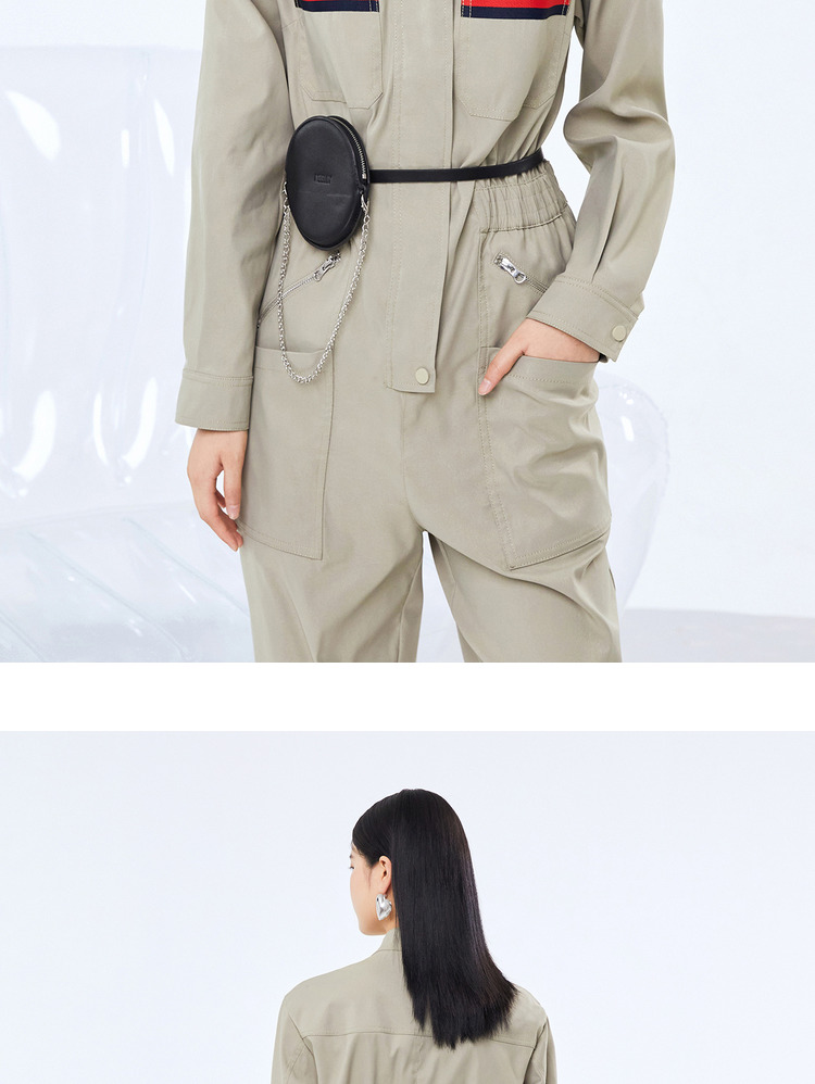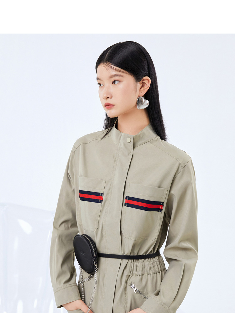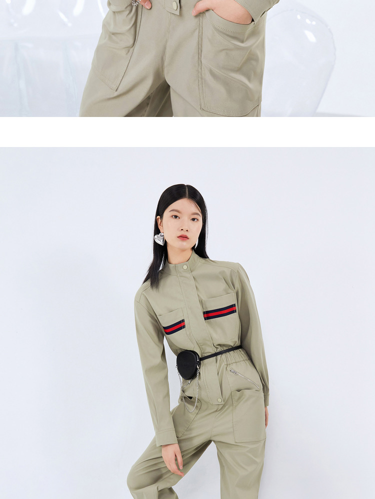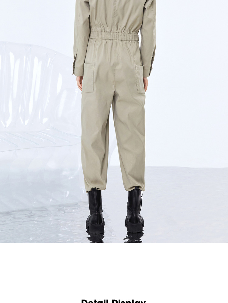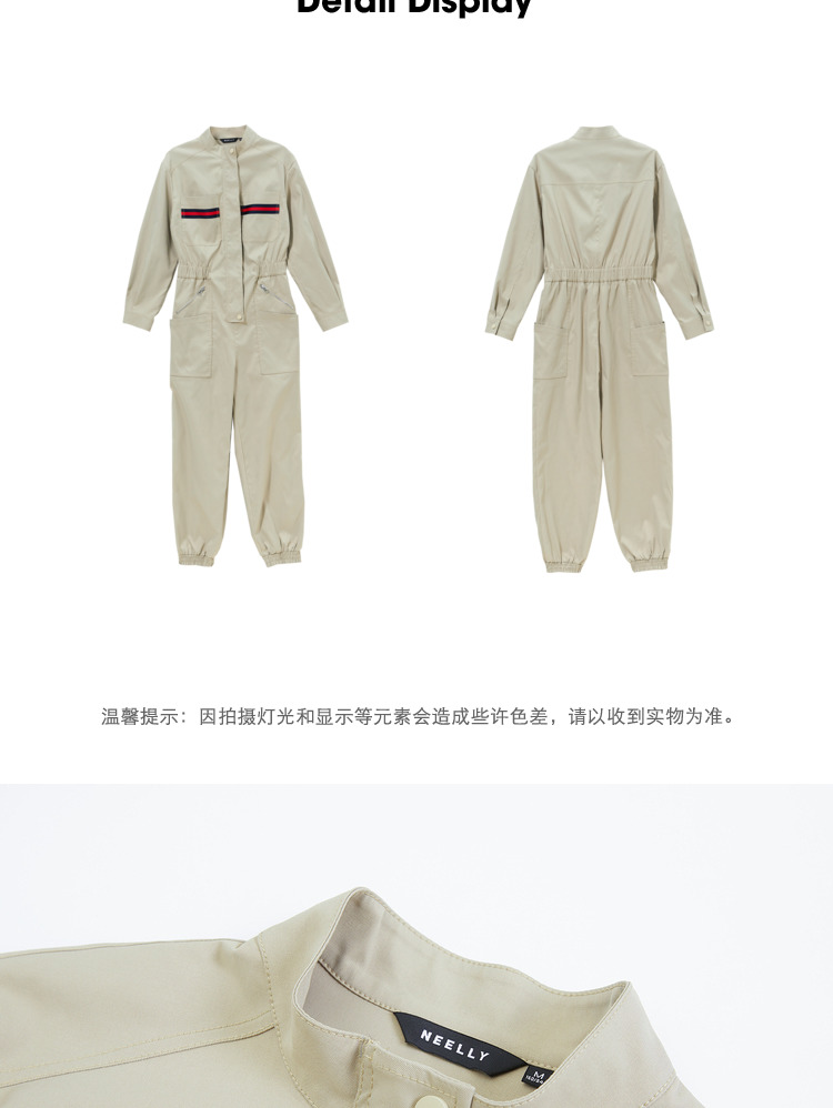 NEELLY纳俪工装风立领连衣裤女宽松百搭工抽绳收腰显瘦连体束脚裤N21081Q01121