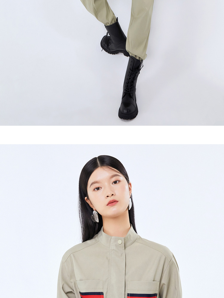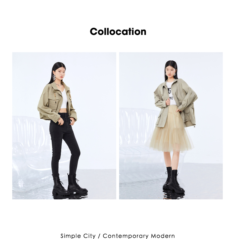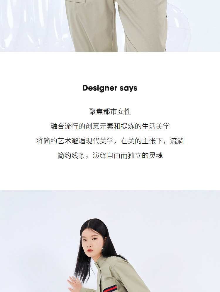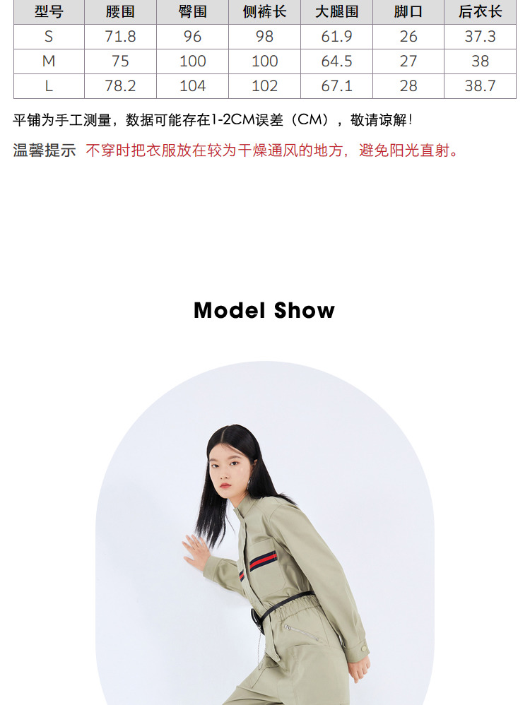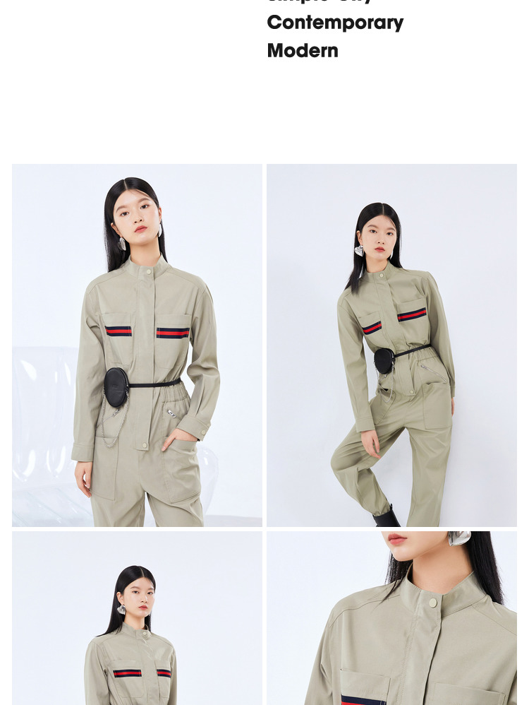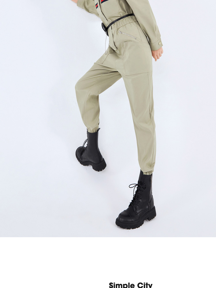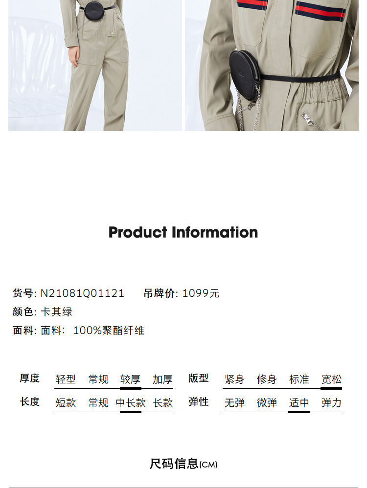 NEELLY纳俪工装风立领连衣裤女宽松百搭工抽绳收腰显瘦连体束脚裤N21081Q01121