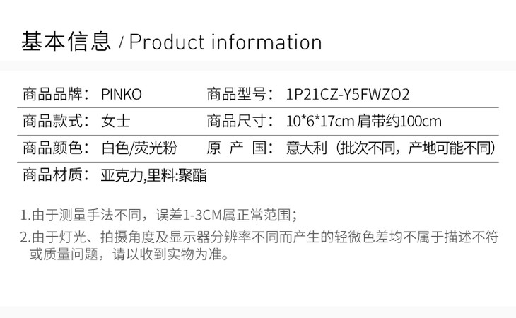 【香港直邮】·QHSS19 Pinko 品高 女士挎包 1P21CZ-Y5FWZO2