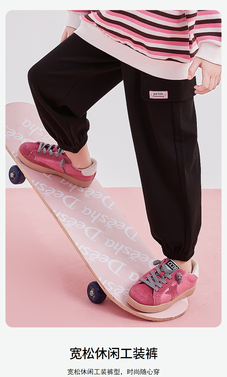 笛莎DEESHA童装女童裤子2024春季新款宽松休闲工装裤