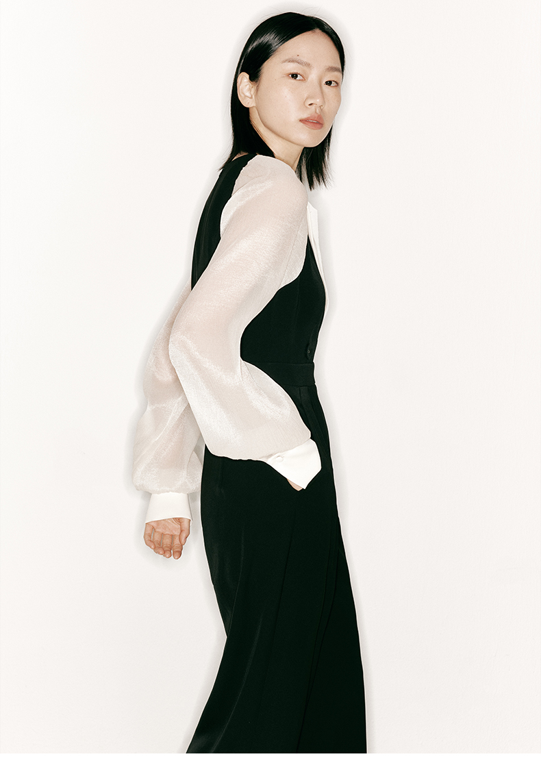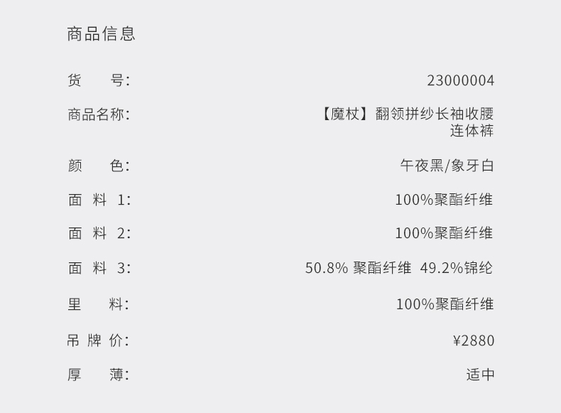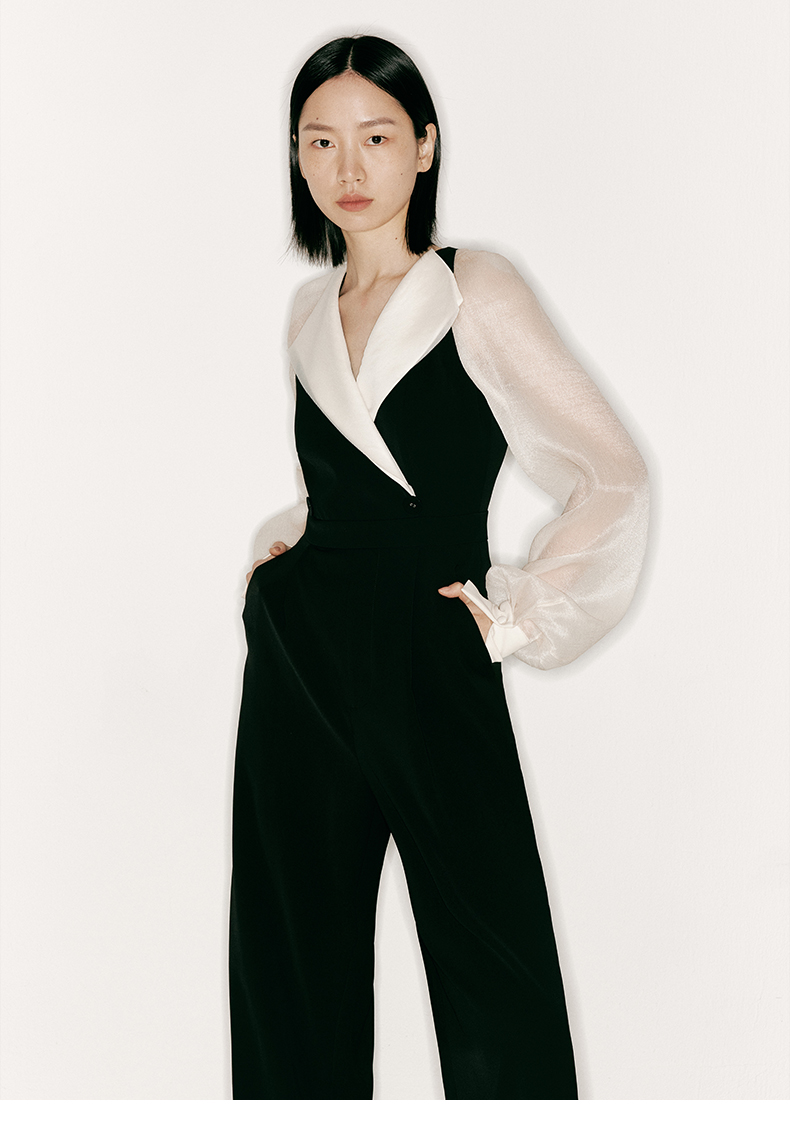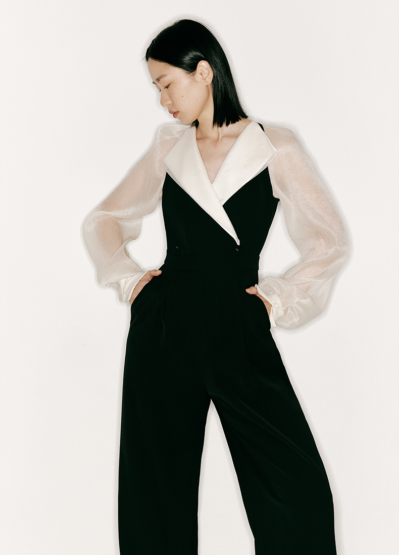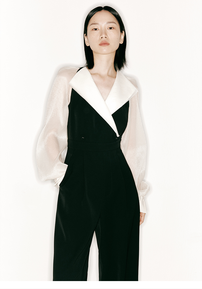 【魔杖】翻领拼纱长袖收腰连体裤/23000004