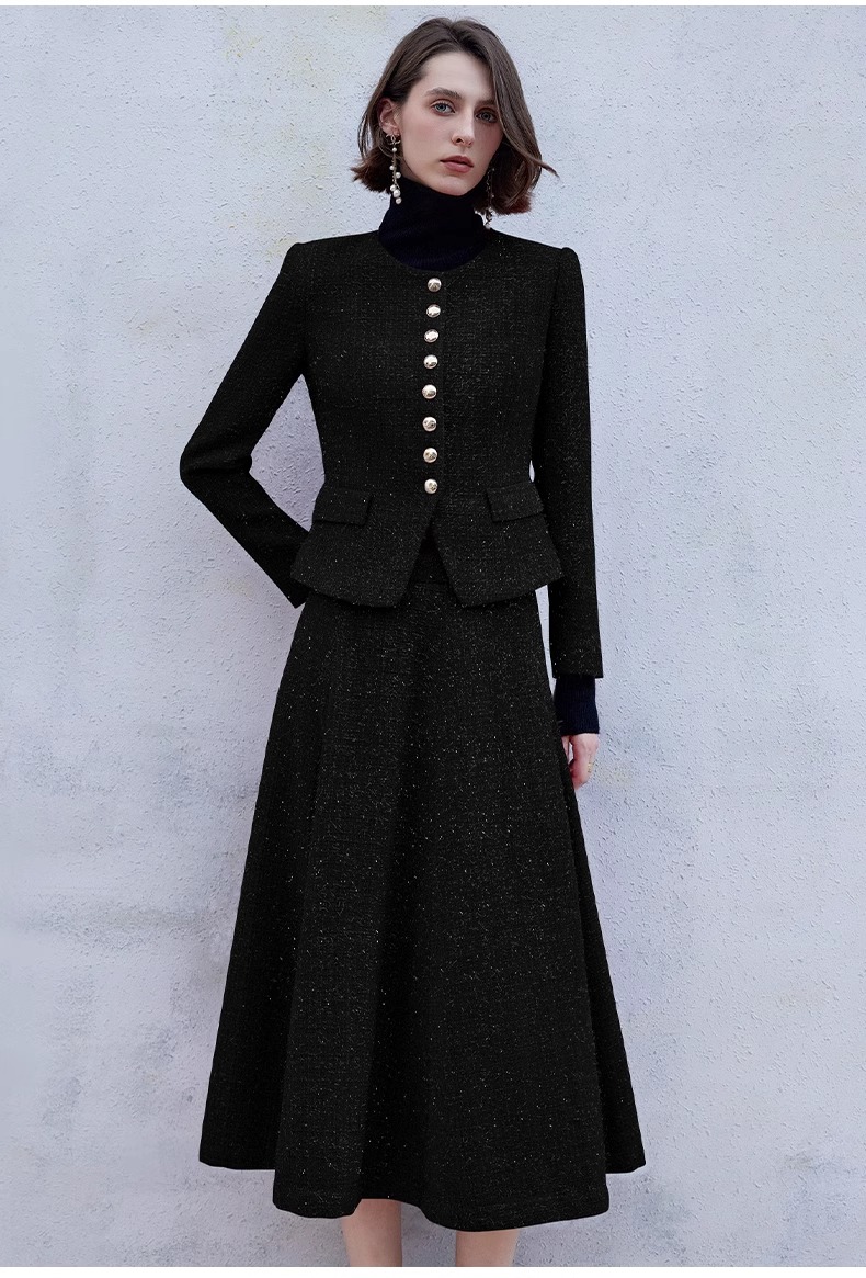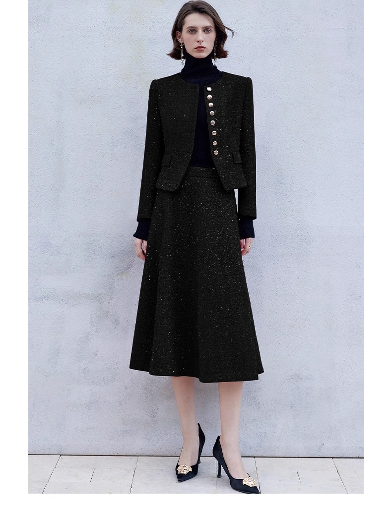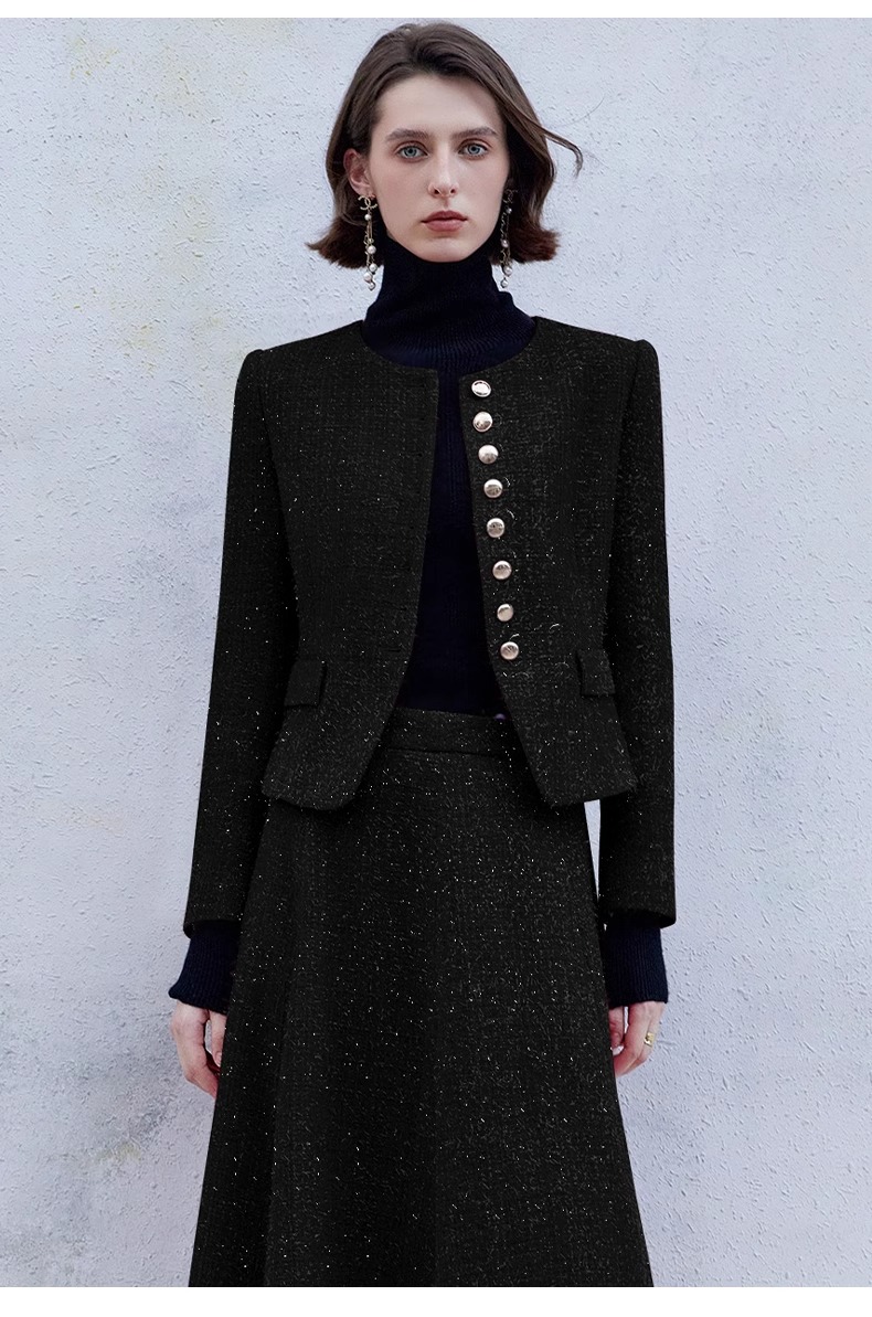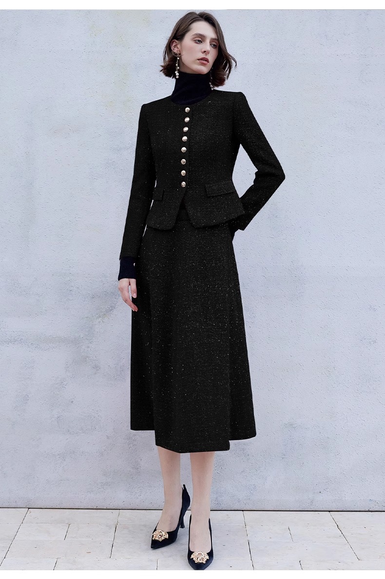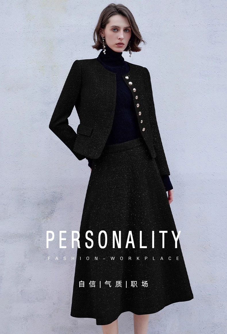 IWY/黑色高级感西装套裙气质名媛小香风时尚通勤两件套主持人职业套装C2045+S2098