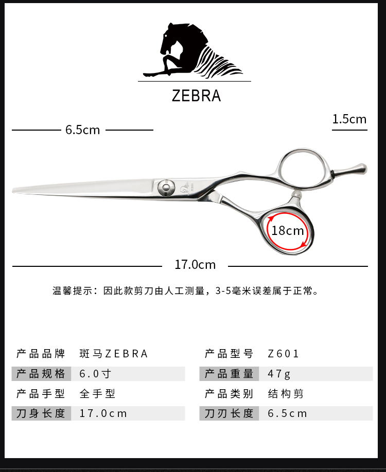 ZEBRA斑马 剪刀 Z601 锋利/直发/刘海/结构剪/线条剪/半手型/平剪/6.0寸