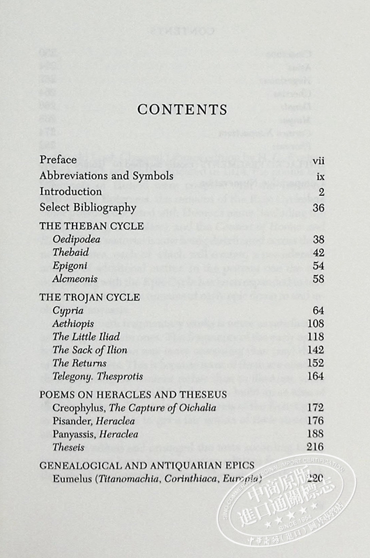 Greek epics of the archaic period include poems that narrate a particular heroic episode or series of episodes and poems that recount the long-term history of families or peoples. They are an important source of mythological record. Here is a new text and translation of the examples of this poetry that have come down to us.