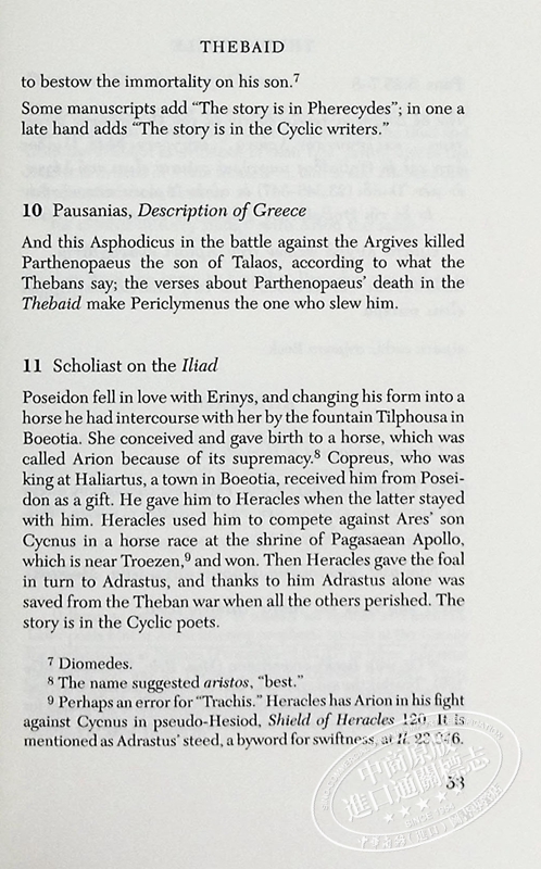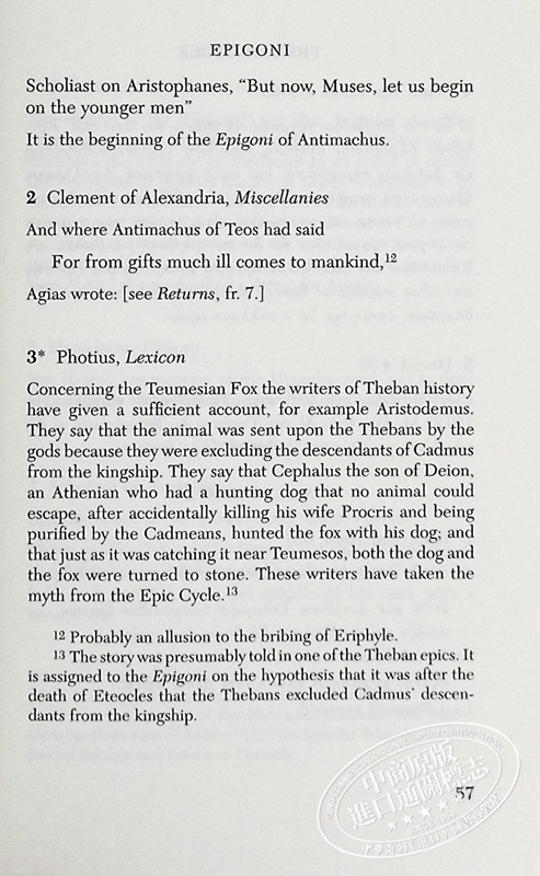 希腊太古时期的史诗包括叙述某一特定英雄事件或一系列事件的诗歌,以及叙述家庭或民族的长期历史的诗歌。它们是神话记录的一个重要来源。这里是流传下来的这种诗歌的例子的新文本和翻译。