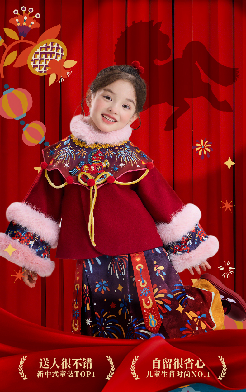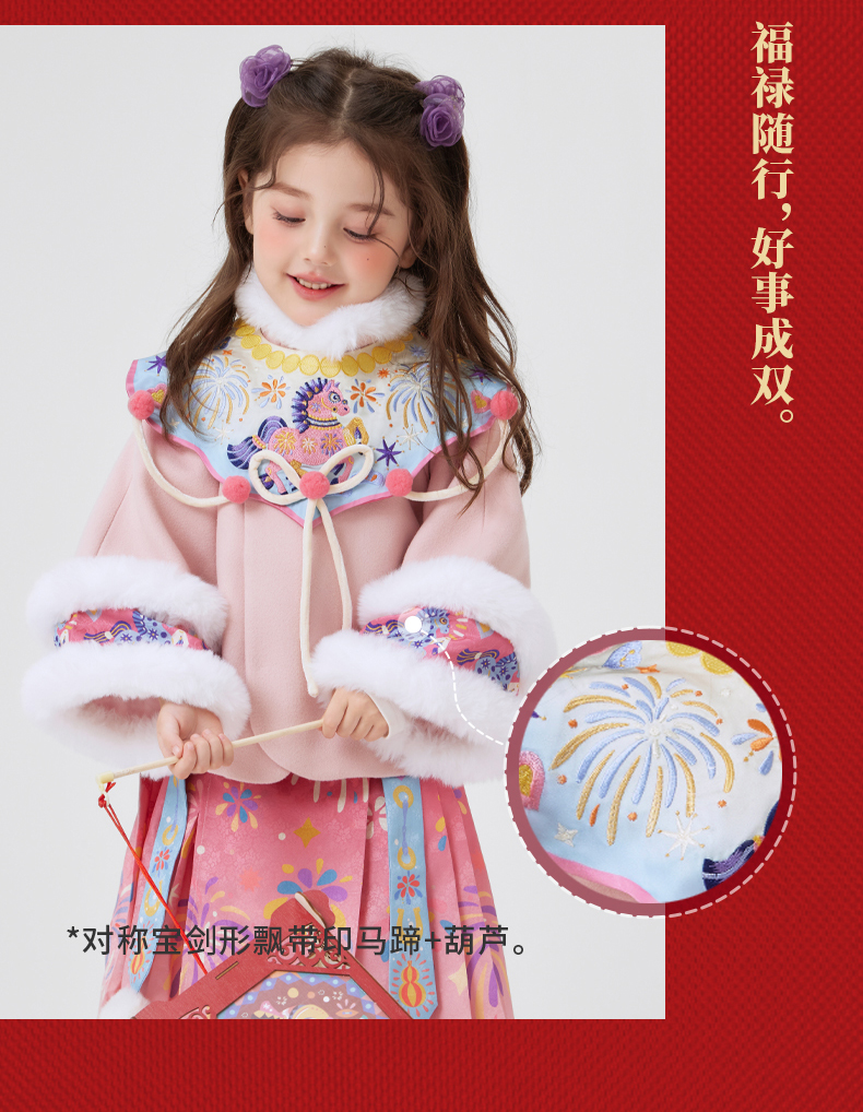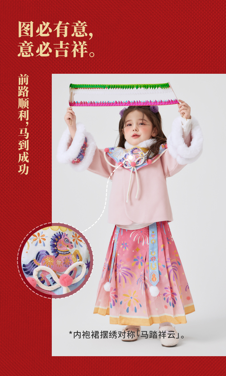 年衣童装女童冬季新款中式公主马面裙加绒盛世跃马汉服套装