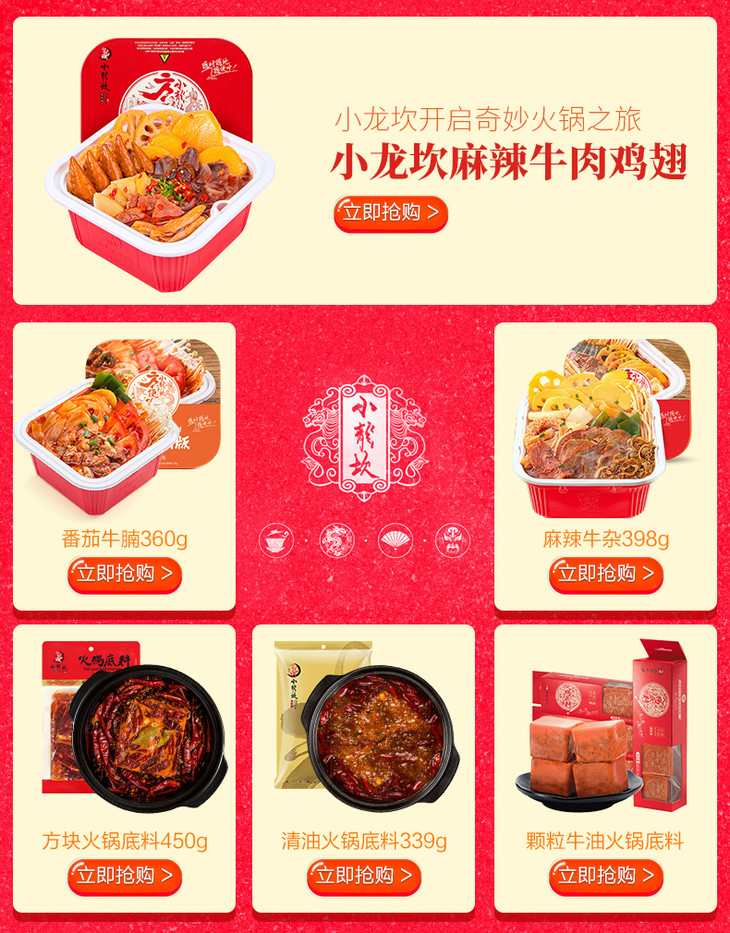 小龙坎火锅底料方便火锅懒人自煮自热火锅 即食速食小火锅 经典牛油 自助火锅418g
