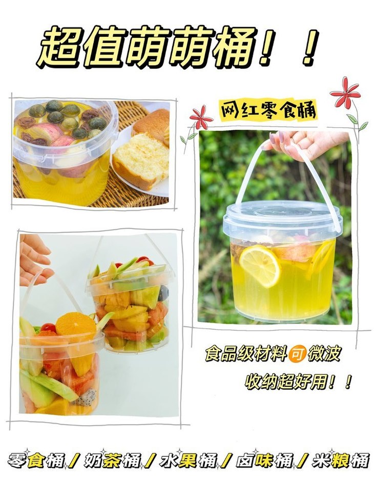 😱谁懂啊❗❗我真的会因为包装买东西~ 👏透明桶装智利西梅✨简约不简单! 提桶就走,方便到飞起🚀~ ❗❗吃完零食桶留着👍这可是个可循环宝藏容器! 🔥PP材质,食品级安全,耐高温小能手~ 💦清洗干净就变身万能桶,只要你想,它就能装! ☕DIY奶茶桶、水果捞桶、深夜泡面神器...等等~ 🎉利用到极致,还能用来搞收纳! 米面❗❗饰品❗❗小物件❗❗一桶搞定,防潮又防尘~ ✨加厚桶身,还带盖,结实耐造,装啥都行! 🎉相当于买零食还送一个桶啊,宝子们!