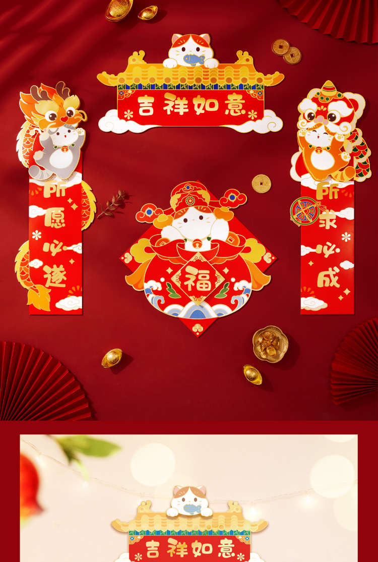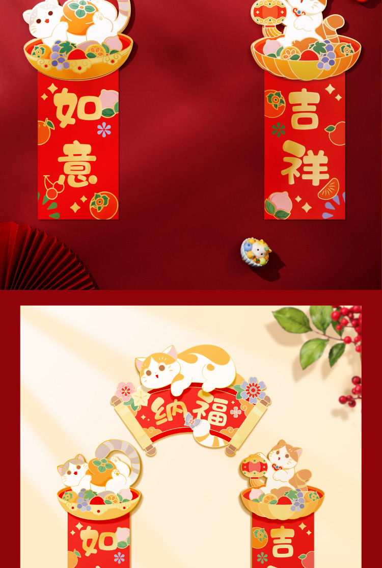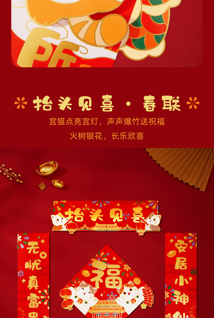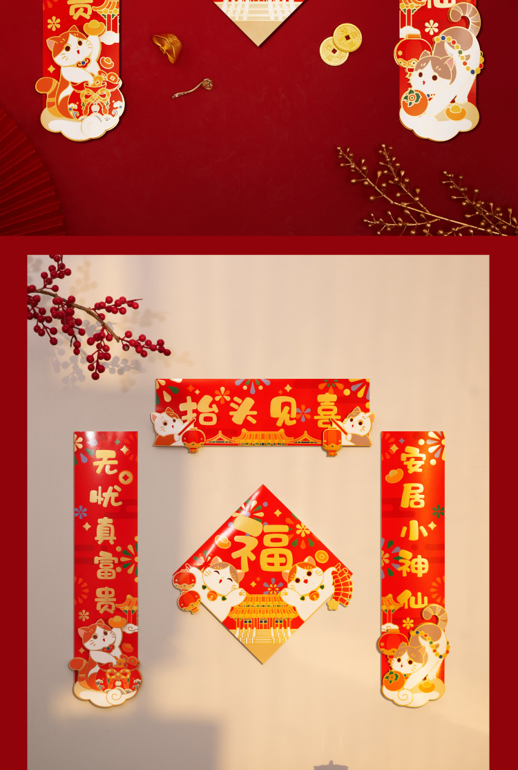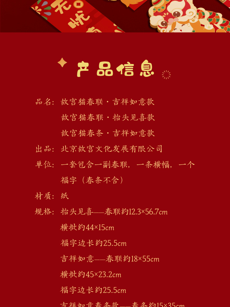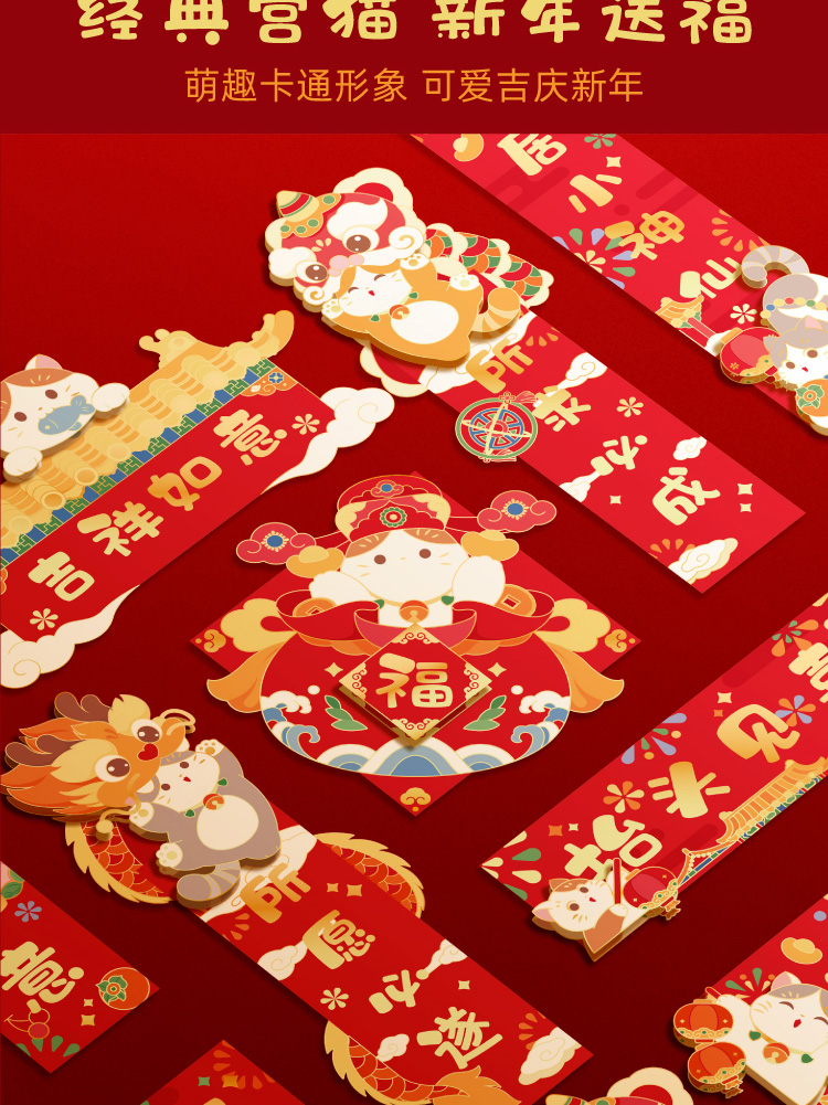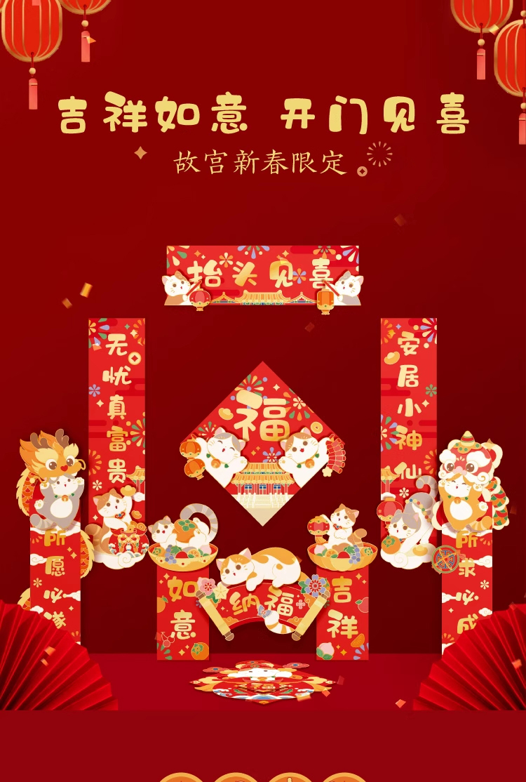 【故宫家居】故宫猫新春对联春条乔迁新年卡通对联装饰