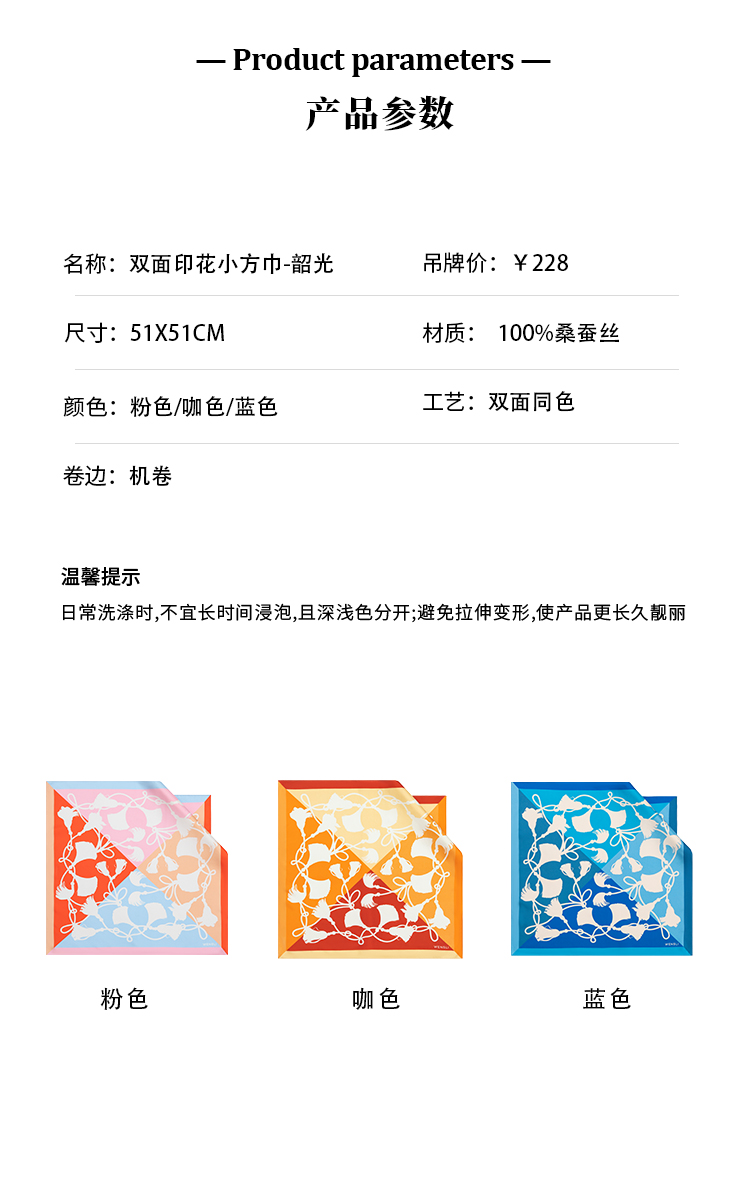 万事利“南国晚风”51厘米双面印花真丝小方巾
