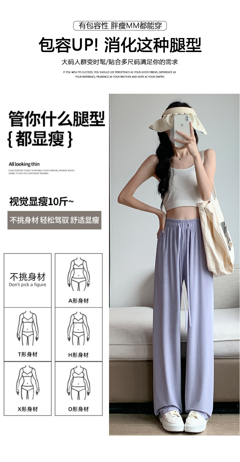 【元气爆炸!不挑身材】严选窄版冰丝防晒裤女夏季薄款高腰垂感阔腿裤显瘦直筒裤休闲长裤。ry
