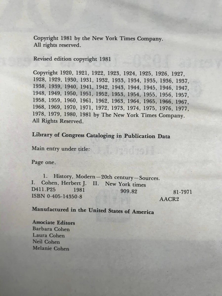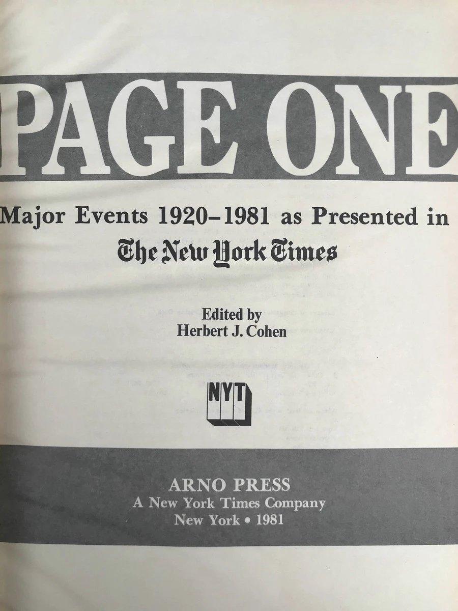 头版:纽约时报1920-1981年报道重大事件集 配插图 精装8开