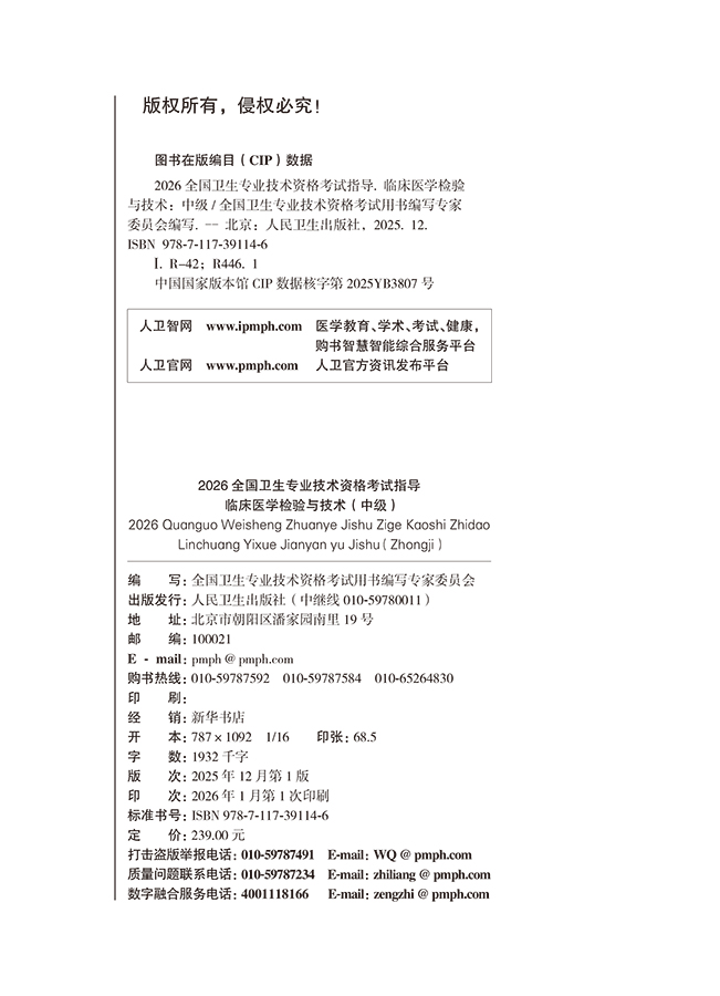 2026临床医学检验与技术(中级)全国卫生专业技术资格考试指导 全国卫生专业技术资格考试用书编写专家委员会 人民卫生出版社
