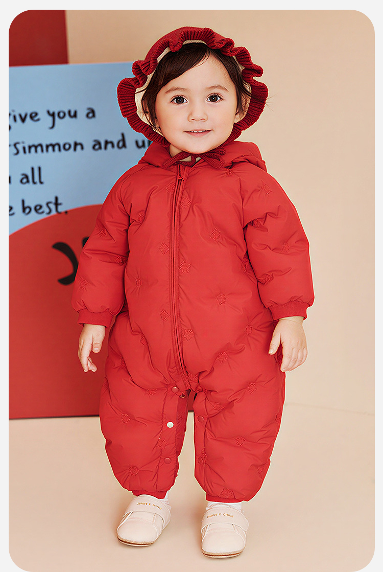 【真心绒】迷你巴拉男女童羽绒连体衣宝宝婴儿精灵帽爬服2025冬