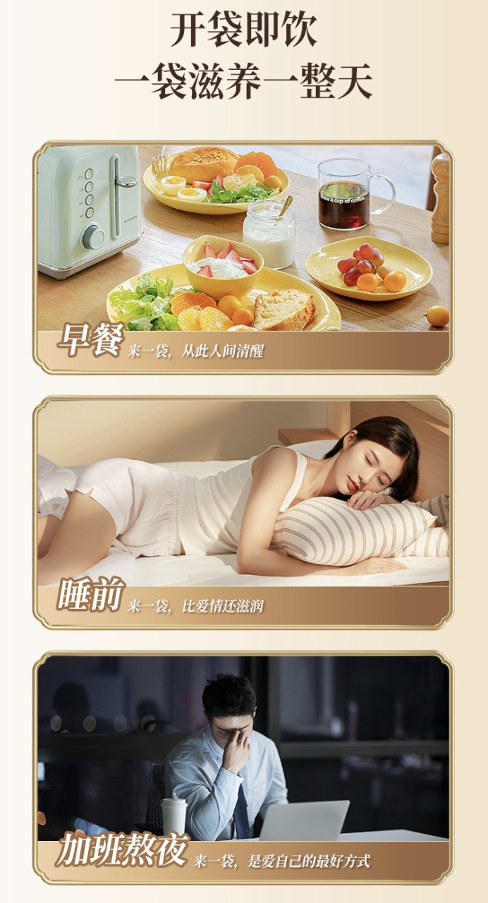食用方法:每次1袋,每袋用约100mL温水冲饮