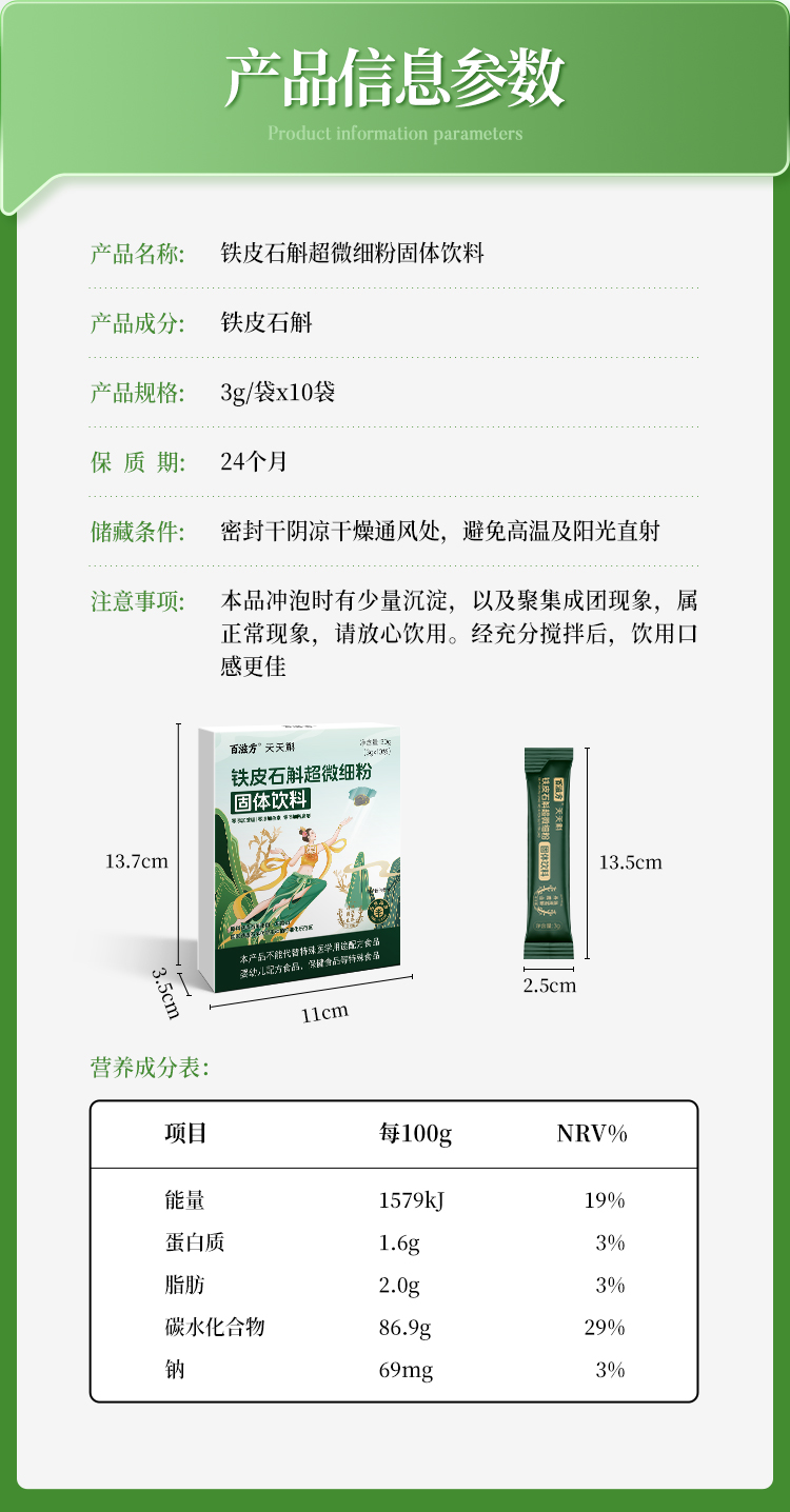 铁皮石斛超微细粉固体饮料:铁皮石斛
