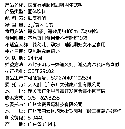 铁皮石斛超微细粉固体饮料:2024.11.26
