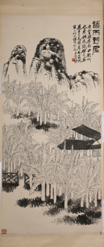 齐白石一生五次出游,三次到钦州。分别是1906年,1907年和1909年。在第二次到钦州时恰巧中越边疆不靖,兵备道派兵巡逻。齐白石趁此机会,随车到东兴。他站在高处,环视越南芒街,便走过铁桥,到达北仑河岸,游览了越南山水。他亲眼看到中越一带山清水秀,野蕉数百株,丛立成林,映得满天成为绿色世界,人行其中,连影子都变作了绿颜色。他对此绝佳美景念念不忘,屋以此题材作画,是帧作于1925年的 《绿天野屋》 便是其一。