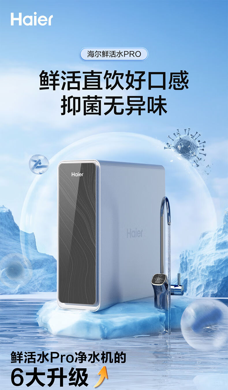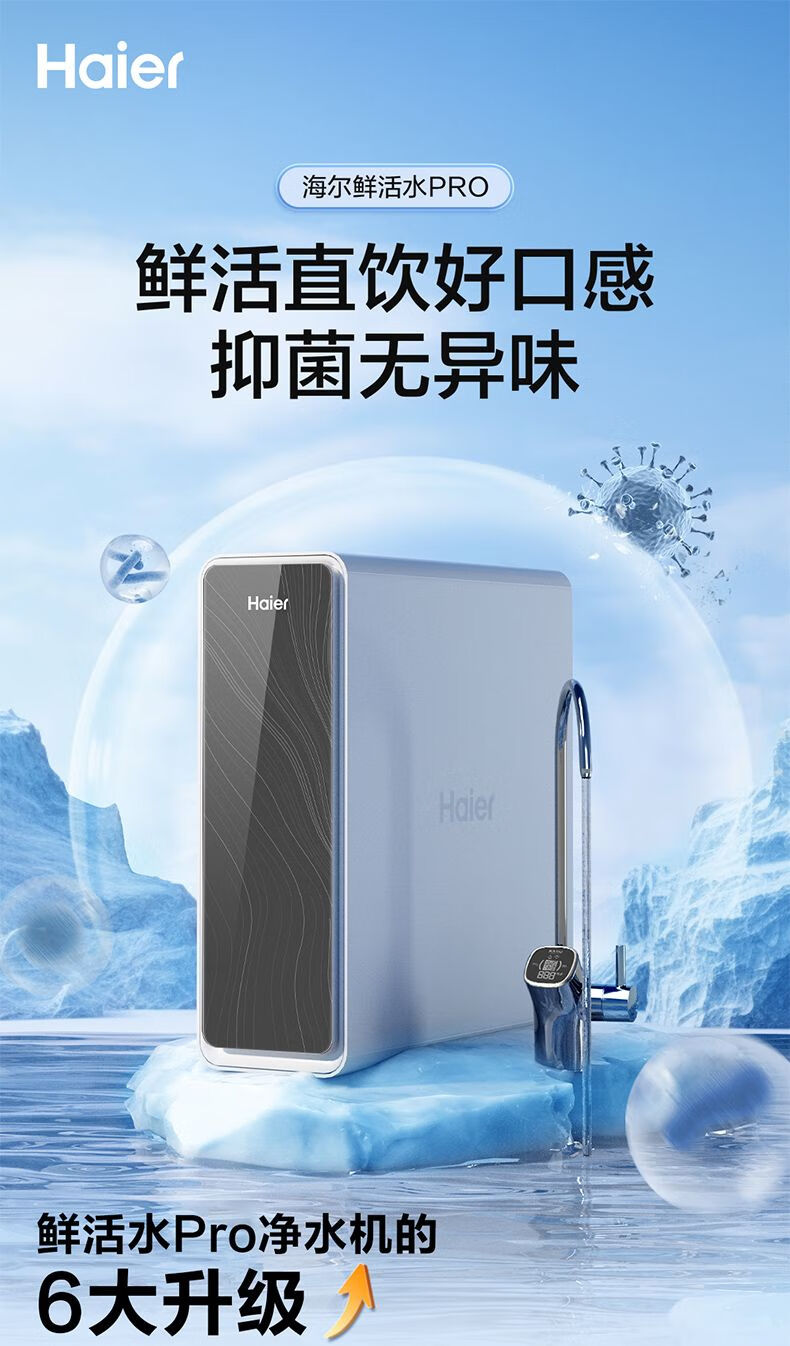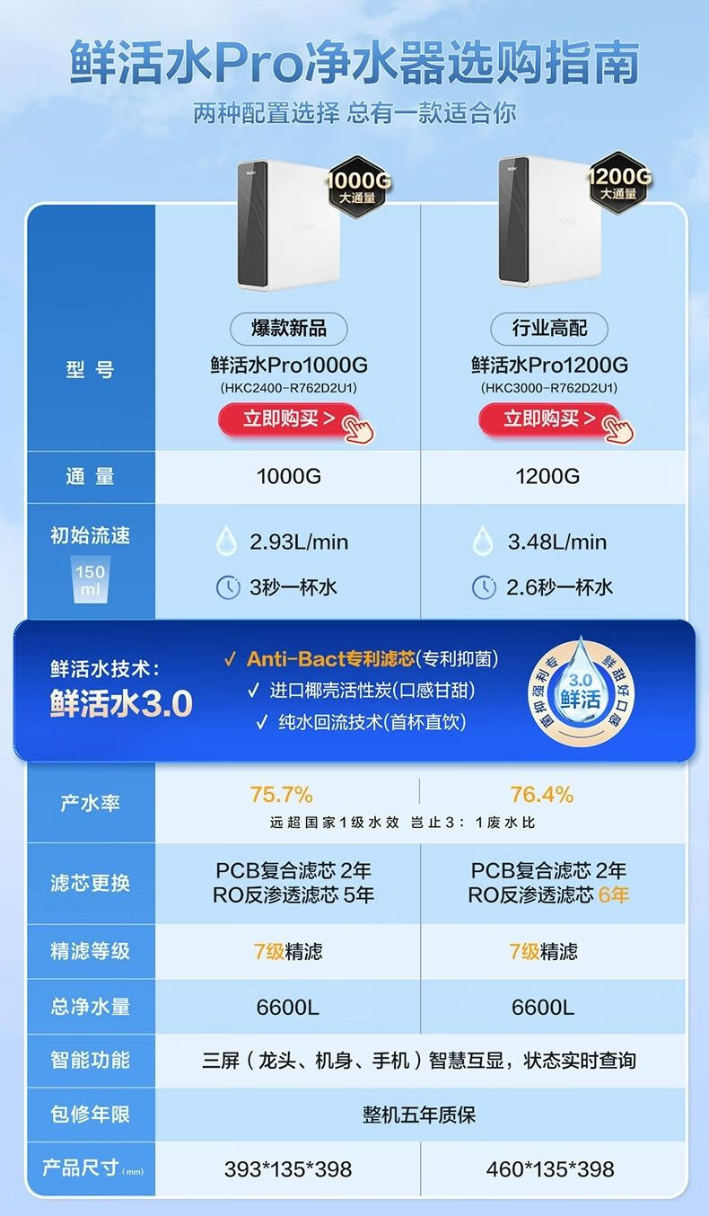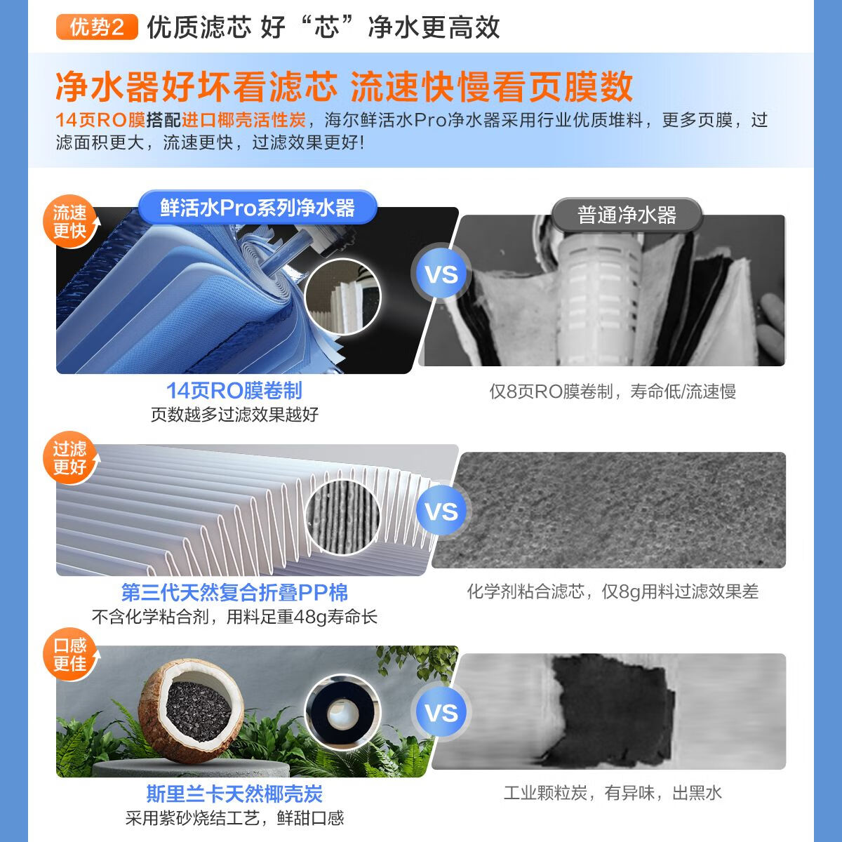 海尔净水器鲜活水PRO家用直饮过滤器厨下式RO反渗透净水机 HKC3000-R762D2U1【1200G】