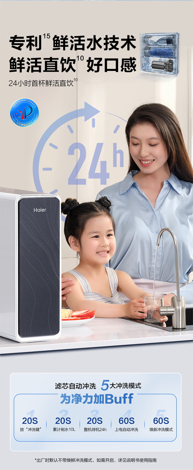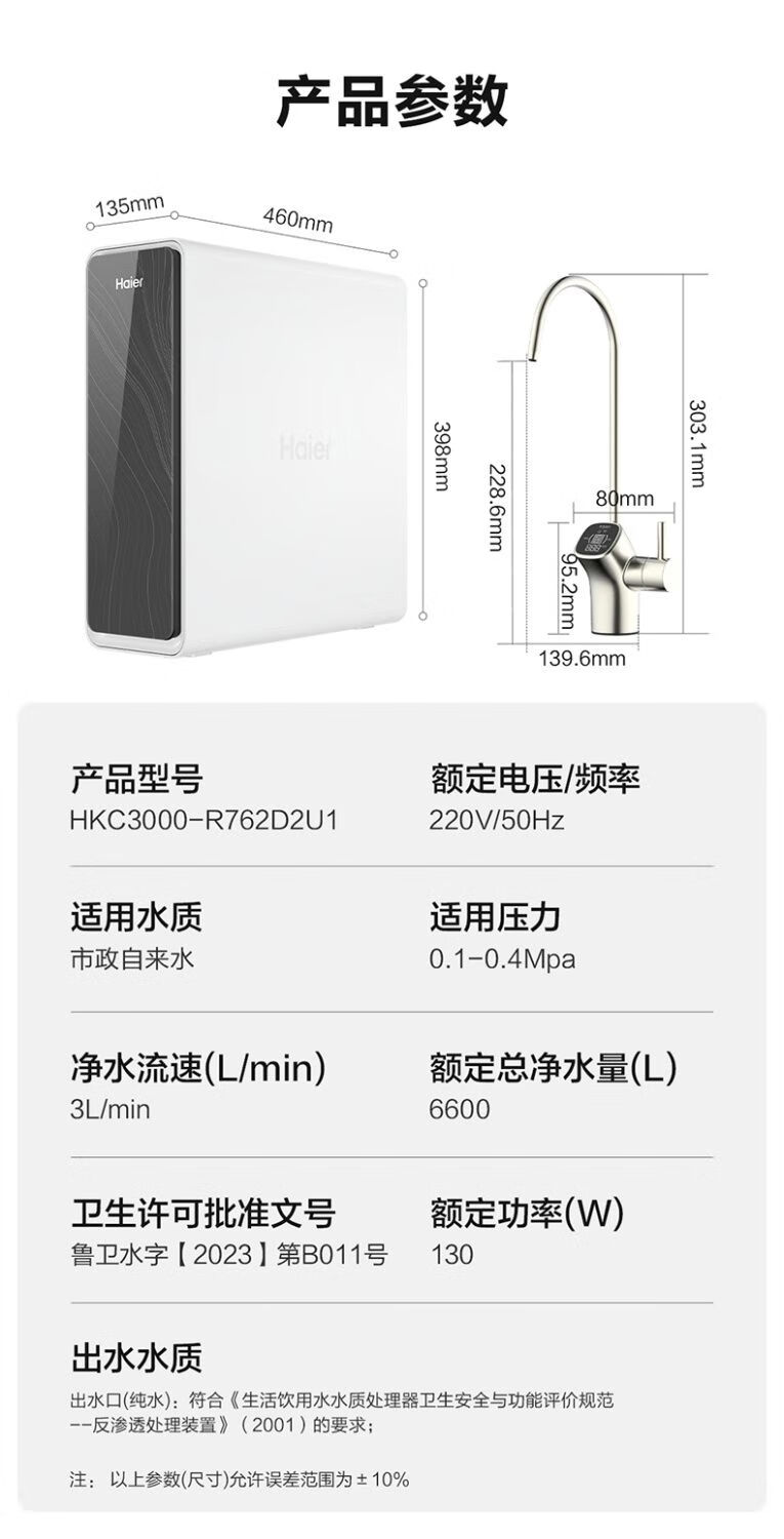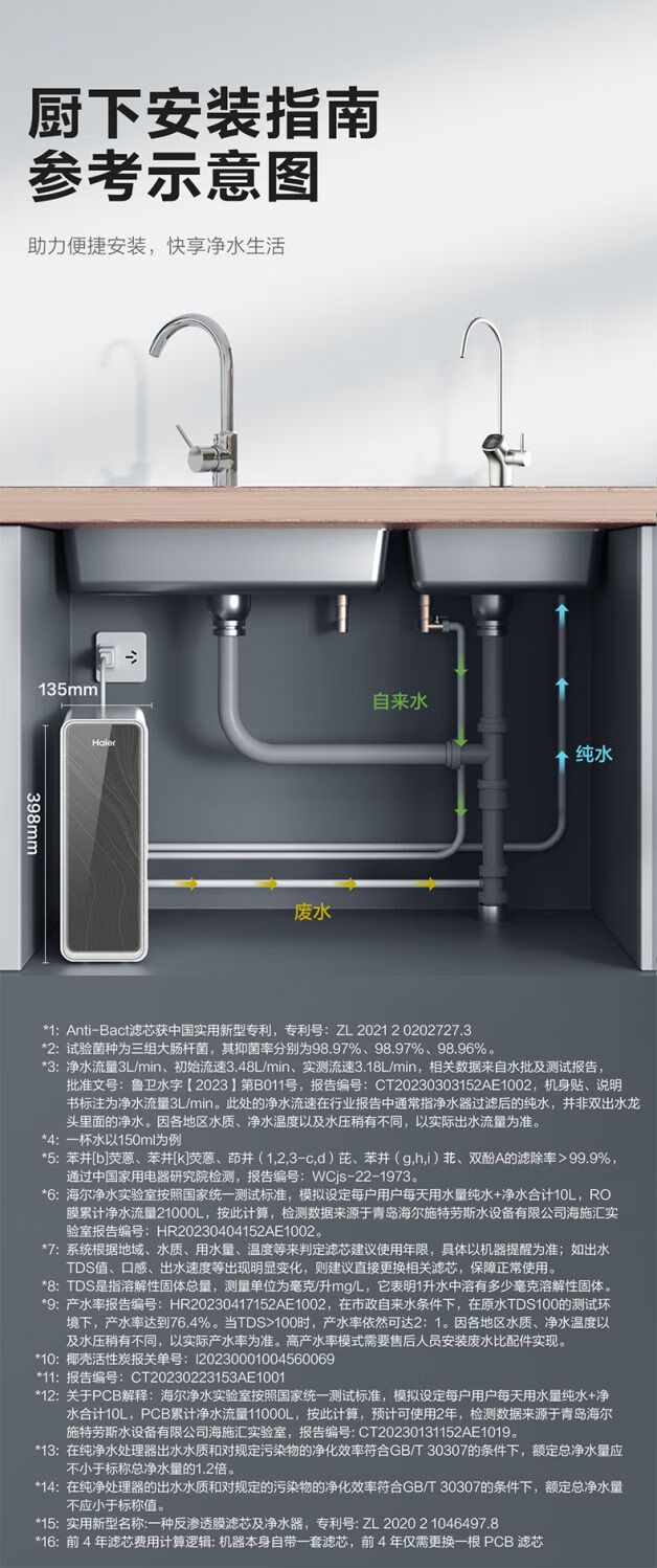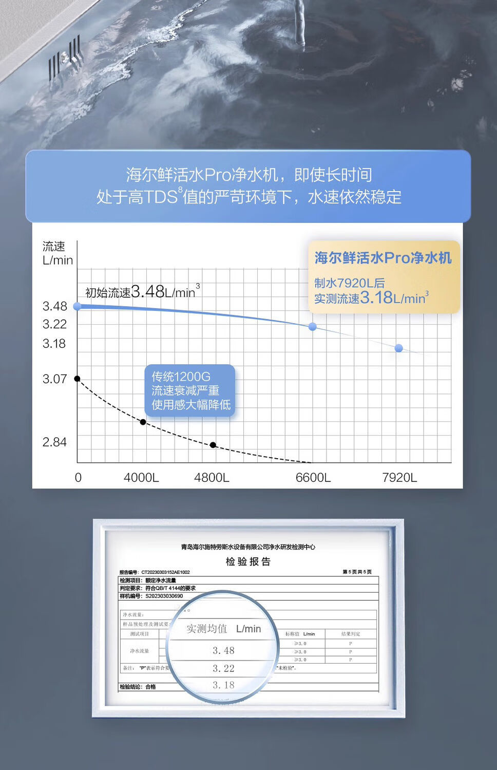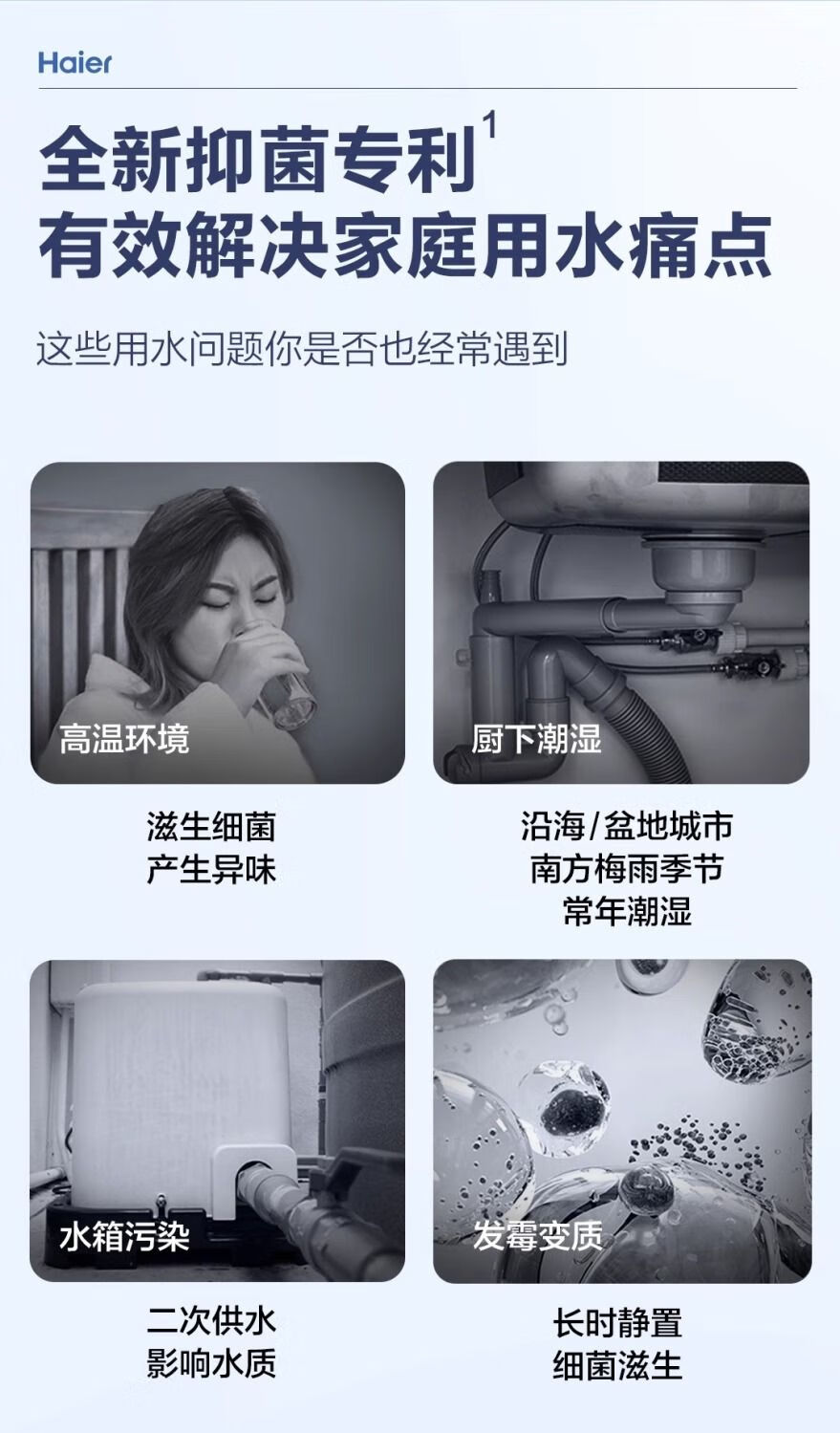 海尔净水器鲜活水PRO家用直饮过滤器厨下式RO反渗透净水机 HKC3000-R762D2U1【1200G】