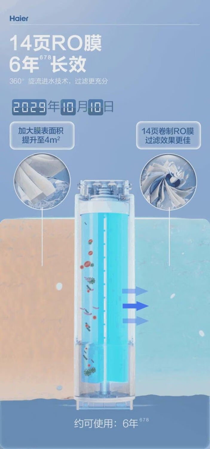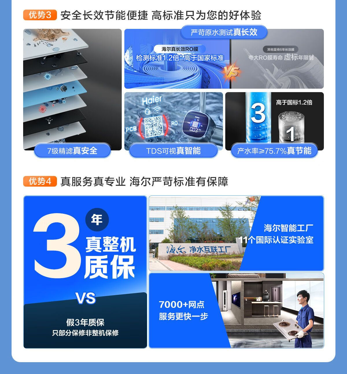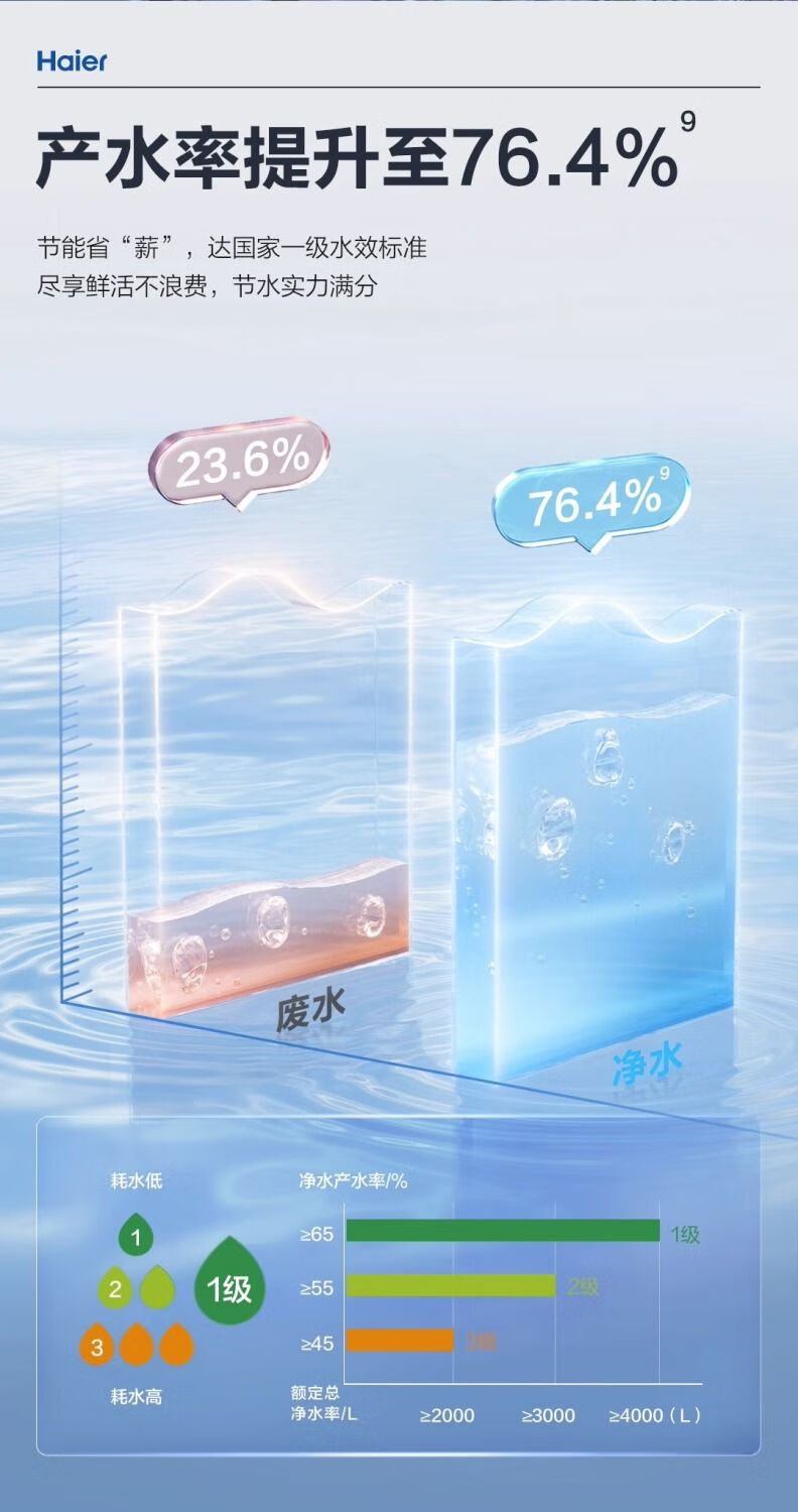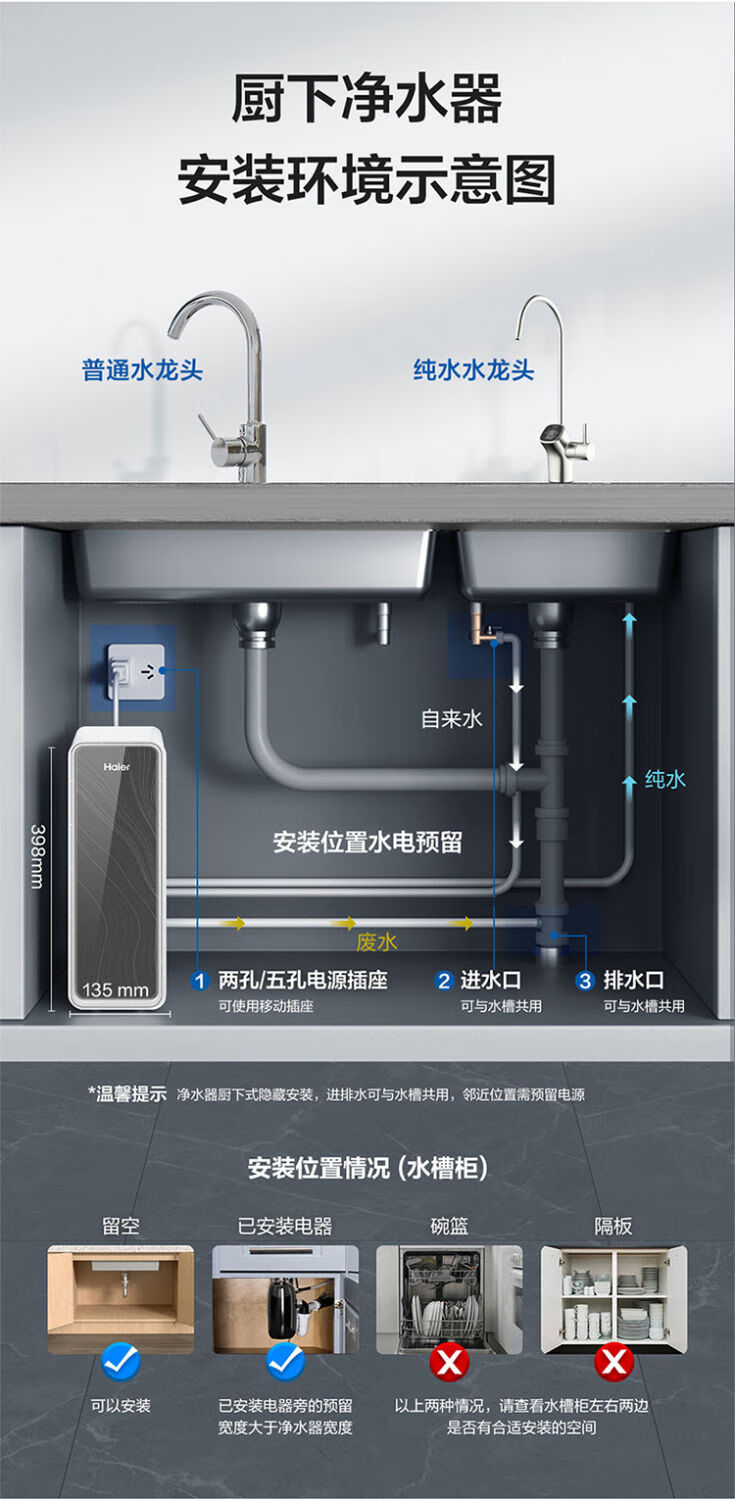 海尔净水器鲜活水PRO家用直饮过滤器厨下式RO反渗透净水机 HKC3000-R762D2U1【1200G】