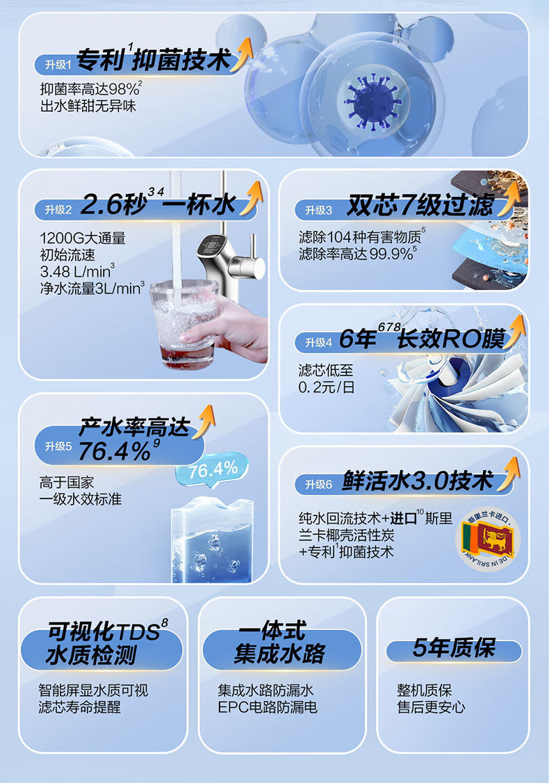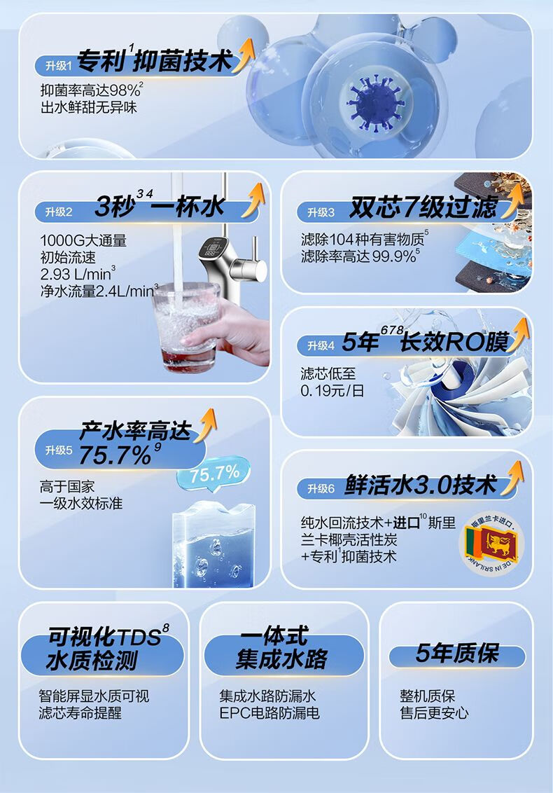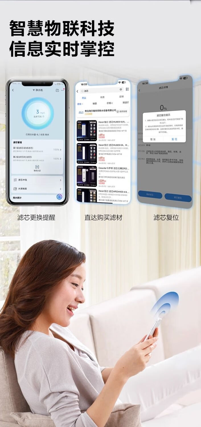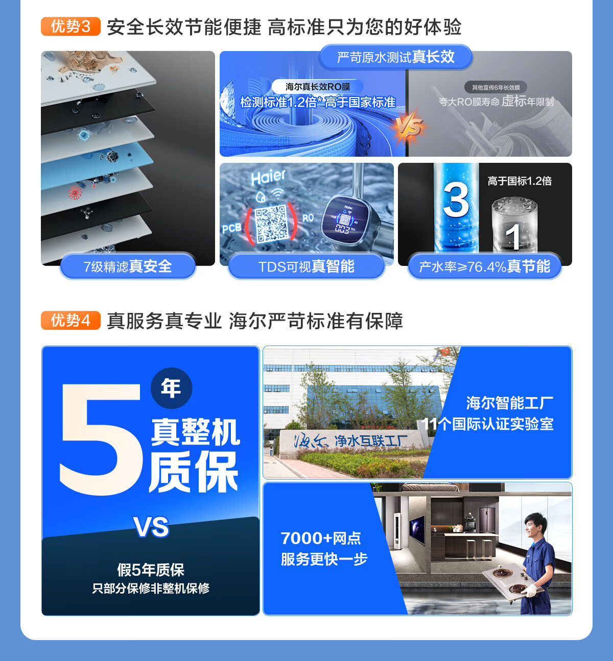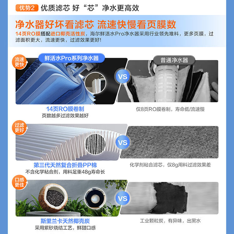 海尔净水器鲜活水PRO家用直饮过滤器厨下式RO反渗透净水机 HKC3000-R762D2U1【1200G】
