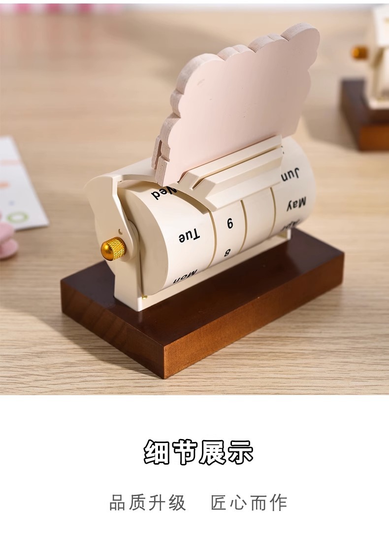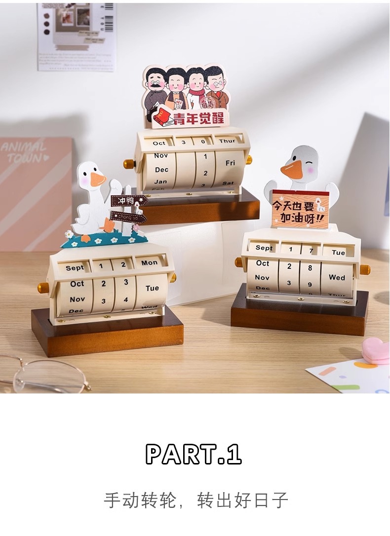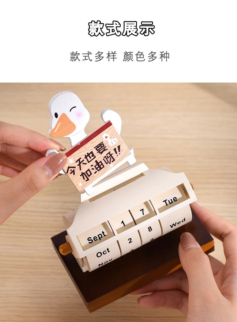 【转轮万年历!可以旋转轮盘的摆件】加油鸭木质转轮万年历台历新款日历摆件多功能实用桌面万年历。ry